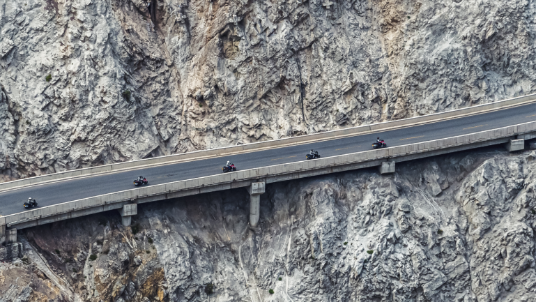 RX6搭載的KYB減震對(duì)于大小顛簸的過濾十分到位,在一些直道搓板路面上高速行駛,減震都能很好的過濾掉大部分震動(dòng),以至于穿越之后不會(huì)手腳發(fā)麻。經(jīng)過察瓦龍之后,出現(xiàn)一些大塊浮石路段,路過的自行車完全不能行駛,只得下車艱難推行,而車隊(duì)則從旁邊直接呼嘯而過。