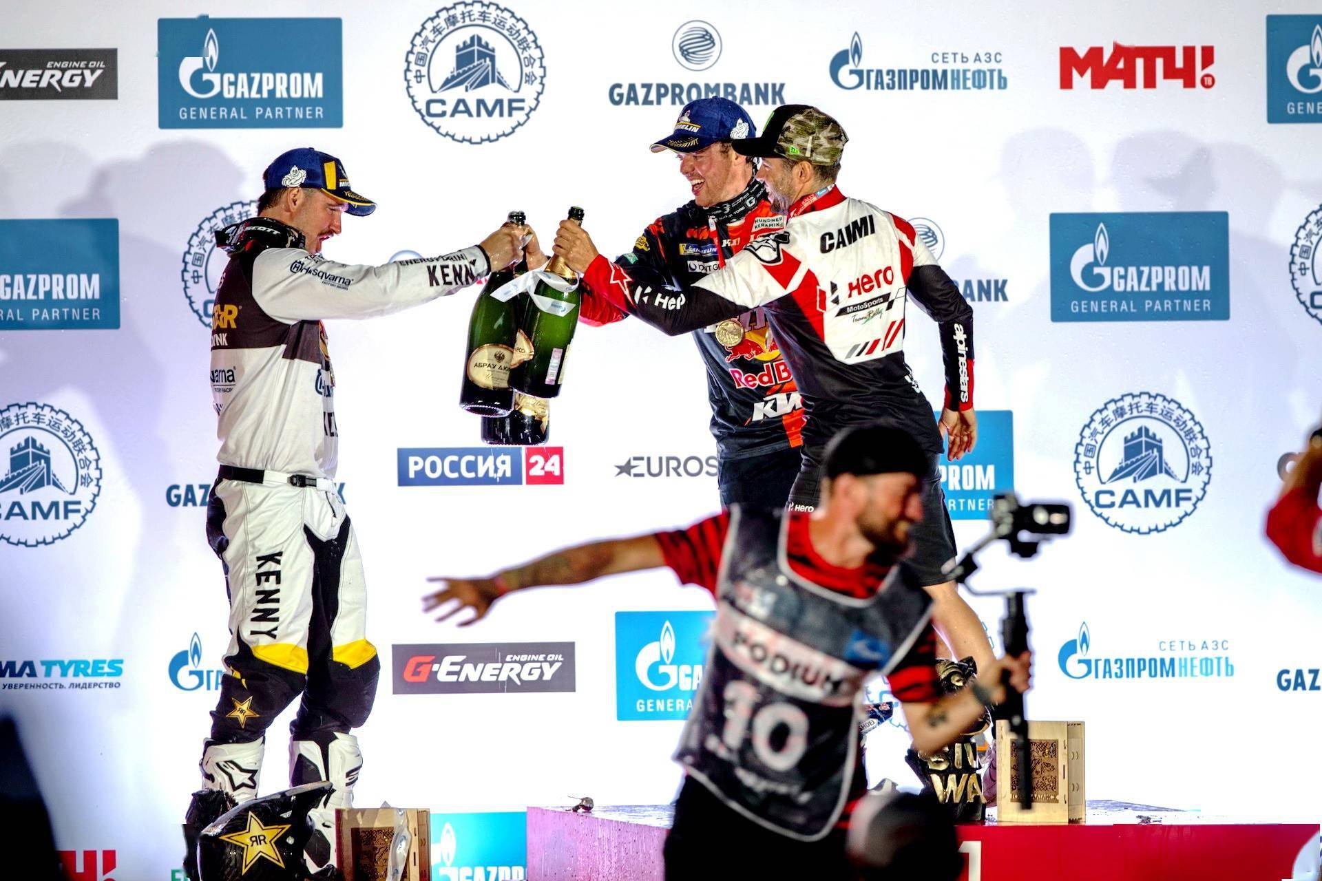 2 號(hào)車、Hero 印度英雄摩托工廠車隊(duì)的阿根廷車手凱米(Franco Caimi)落后頭車 6 分鐘 26 秒,拿到了季軍。