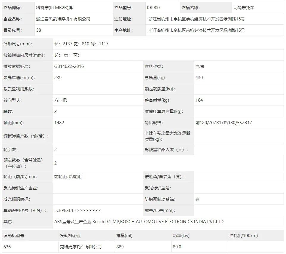 近期,國內(nèi)工信部的網(wǎng)站,新車公告欄中居然出現(xiàn)了KTM 890 DUKE 的身影,這里有個(gè)奇怪的點(diǎn),公告中的產(chǎn)品商標(biāo)是科特摩牌(科特摩就是KTM),但是生產(chǎn)企業(yè)確實(shí)春風(fēng),按照以往的套路來看,如果是CKD的話,那商標(biāo)應(yīng)該也是春風(fēng),那這是什么操作呢?不過可以確定是肯定不是進(jìn)口了,因?yàn)檫M(jìn)口車是不會(huì)出現(xiàn)在工信部的新車公告中的!
