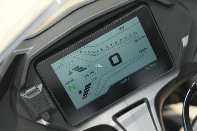 眾所周知,賽350和追350是同平臺車型,所以在一些配置方面,兩款車是通用的,比如這塊全彩液晶儀表。