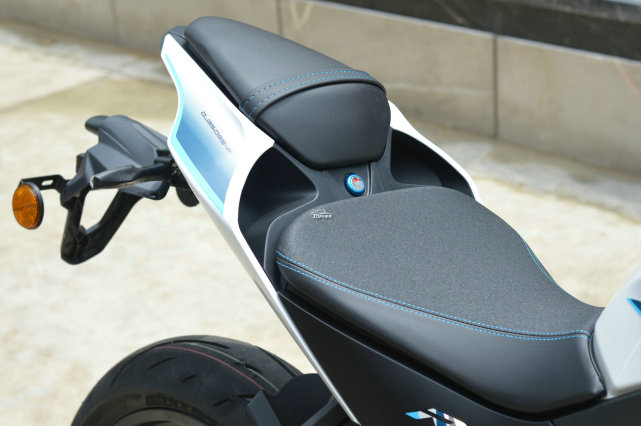 分體式坐墊的駕駛位采用防滑面料,支撐感不錯,前端有收窄的設計,進一步降低了對身高的要求。