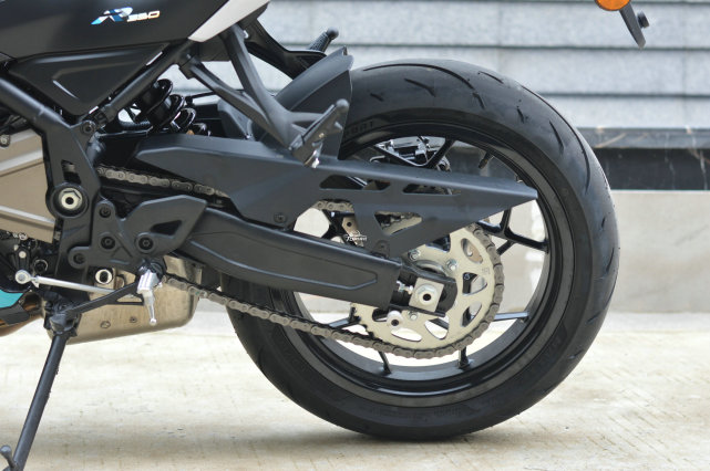 頗受爭議的圓管后搖臂并沒有出現(xiàn)在賽350上,為了提升檔次改用鋁合金材質(zhì)的香蕉式的后搖臂,不僅有利于輕量化,而且視覺觀感大幅提升。