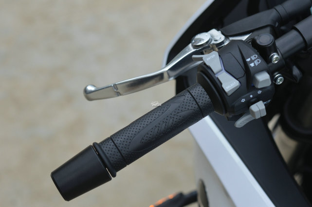 右手把按鍵比較常規(guī),就多了雙閃的功能按鈕,離合和前剎車牛角都具備調(diào)節(jié)功能,這對女孩子來說是一個非常貼心的功能。