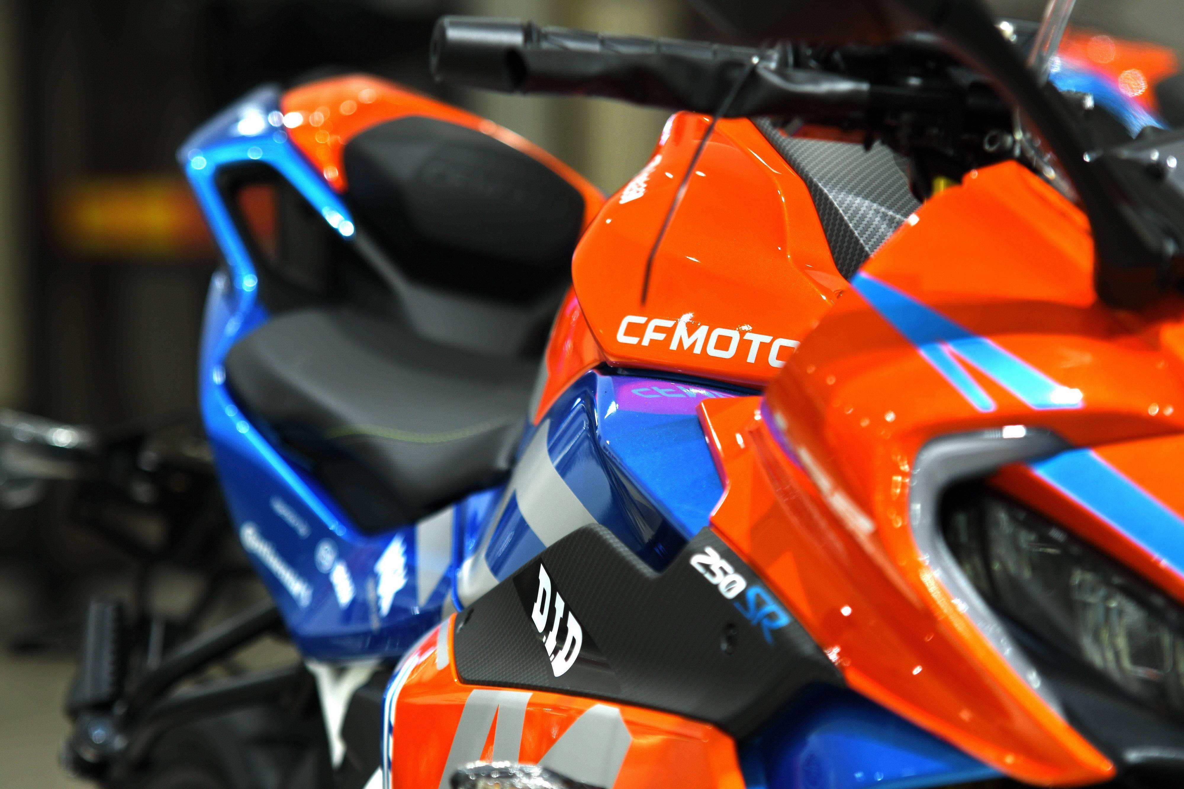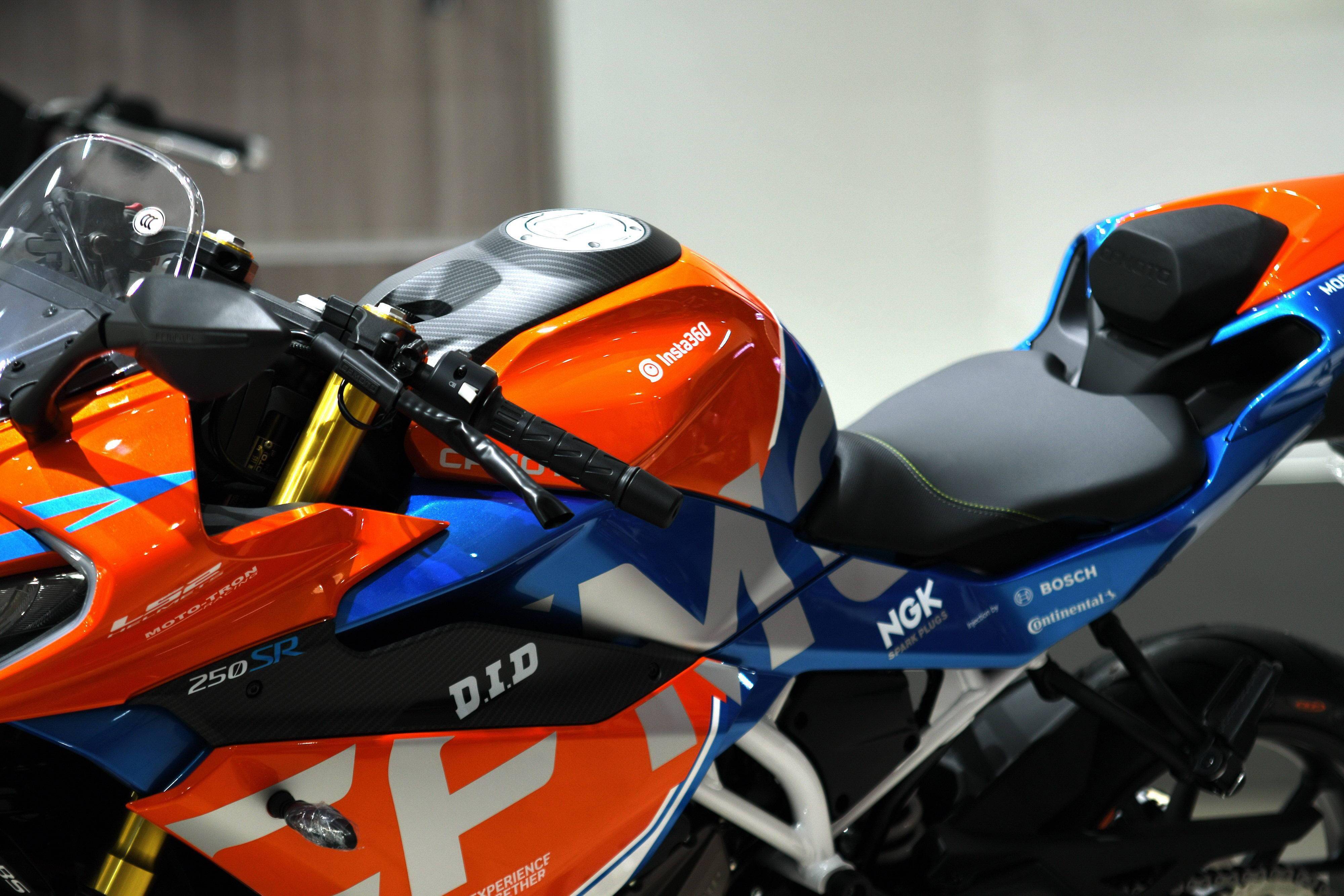 在標(biāo)準(zhǔn)型發(fā)布了大約一周年之后,春風(fēng)摩托在今年二月底發(fā)布了 250SR 賽道版。與最初的標(biāo)準(zhǔn)型相比,賽道版的懸掛系統(tǒng)、剎車磨擦片、輪轂等多項(xiàng)配置經(jīng)過了升級,并采用了一個(gè)有著更豐富元素的車身圖案(車體貼花)。