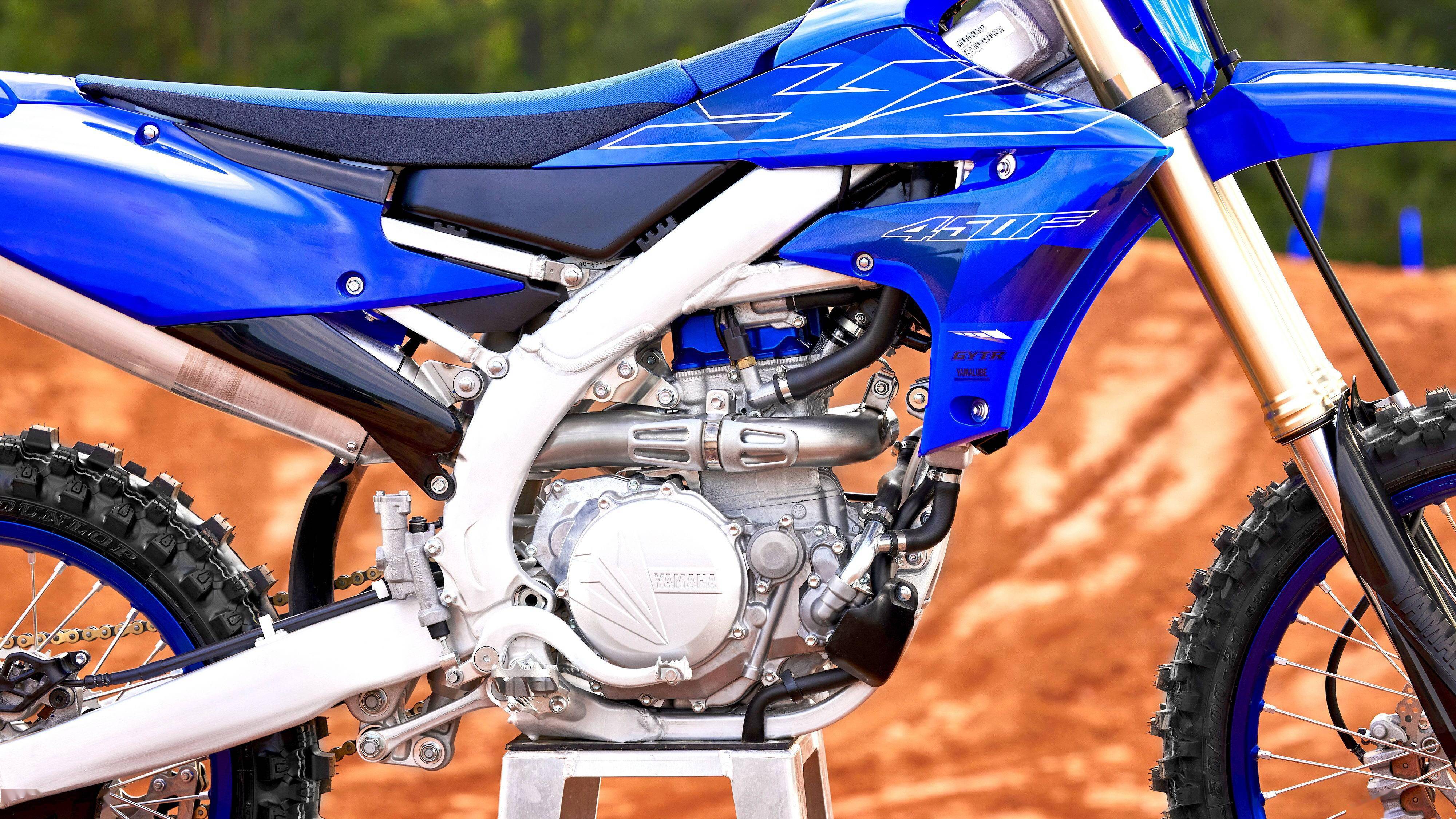現(xiàn)行款的 YZ450F 是 2019 年六月份首次發(fā)布的版本,2022 款仍以之為基礎(chǔ)制作而成, 沿用了自 2009 年首次公開的四沖程水冷后傾反向式汽缸、DOHC 四汽閥的設(shè)計,缸徑、行程為 97 mm x 67.9 mm,排汽量 449 cc,壓縮比高達(dá) 12.8:1,配備了電啟動裝置、五檔的變速齒輪箱。官方未公布新車的最大動力輸出,但該級別的越野賽車、峰值動力輸出普遍會達(dá)到 60 匹以上。