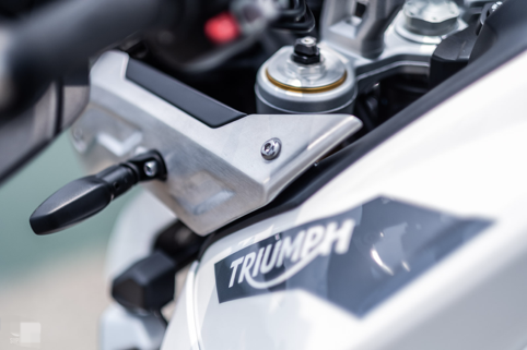 車身中段壯碩的油箱線條也相當符合TIGER 900 RLAAY PRO越野拉力的風格,腿夾部份的設計能讓騎士在長途騎乘中舒服的夾持車身。