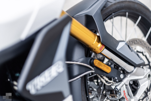 剎車使用前Brembo Stylema對向四活塞卡鉗、后Brembo單活塞卡鉗,搭配上更符合越野路況的前21寸、后17寸鋼絲輪轂無內胎輪圈;座高為850mm~870mm兩段可調、20升油箱,全車干重為201公斤。