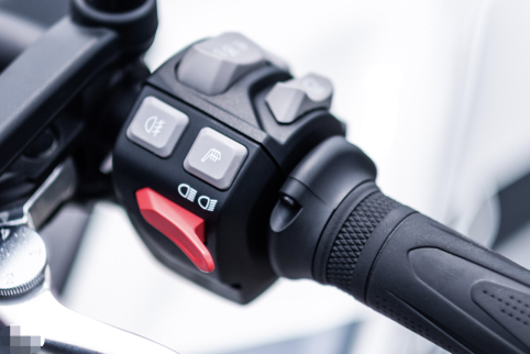 左手手把有加熱手把、遠近燈、定速巡航、騎乘模式、方向燈、儀表操控以及喇叭等按鈕;右手有引擎/啟動開關、儀表HOME鍵、雙簧燈開關