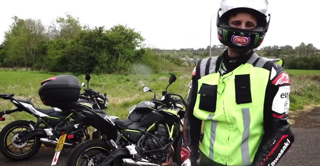 在視頻中可以發(fā)現(xiàn),Jonathan Rea準(zhǔn)備到駕校到前,就準(zhǔn)備好全套連身皮衣、頭盔、長(zhǎng)手套等配備,對(duì)于初學(xué)者來(lái)說(shuō)絕對(duì)是注重安全的超級(jí)資優(yōu)生,抵達(dá)駕校后使用訓(xùn)練車(chē)款為KAWASAKI Z650,這臺(tái)雙缸街車(chē)不但騎乘姿勢(shì)親民,輕盈的重量與操控特性,他也提到在當(dāng)?shù)乜既●{照時(shí)需要配戴耳機(jī)方便教練、學(xué)員之間進(jìn)行道路練習(xí)、考照時(shí)溝通。