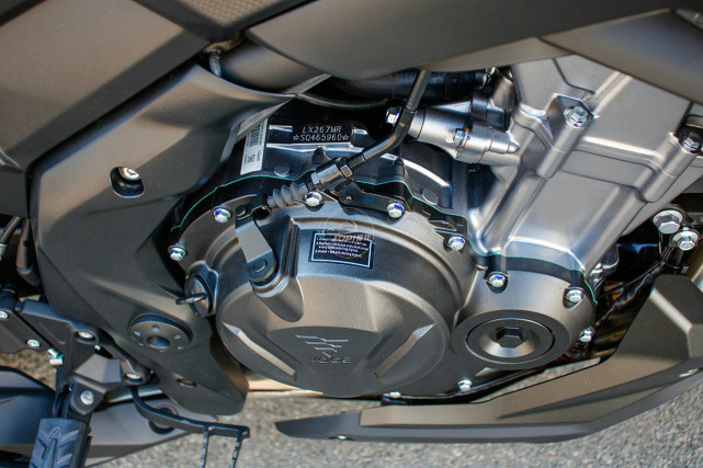 471cc排量的雙缸水冷發(fā)動機,最大功率35Kw/8500rpm,最大扭矩43N.m/7000rpm,這臺代號KE500的發(fā)動機,可以說是國產(chǎn)最好的雙缸發(fā)動機之一,被廣泛的使用在多個品牌的車型上,經(jīng)過多年市場考驗。