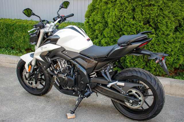 這臺發(fā)動機運行品質(zhì)在國產(chǎn)同級別車型當(dāng)中無出其右,震動的抑制也相當(dāng)?shù)轿?,中低轉(zhuǎn)速有力,高轉(zhuǎn)爆發(fā)力強,零百加速只要5秒出頭,極速水平超過160km/h,對于一臺500cc級別的車型來說相當(dāng)不錯了。
