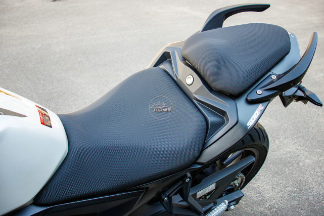 無極500R是一臺非常運動的街車,不過設(shè)計師在設(shè)計坐墊的時候,并沒有舍棄實用性。還是很貼心的考慮到后座乘客的感受,不僅有兩個非常大的后扶手(不喜歡的可以拆掉),而且后座的面積也適合載人,790mm的座高也比較親民。