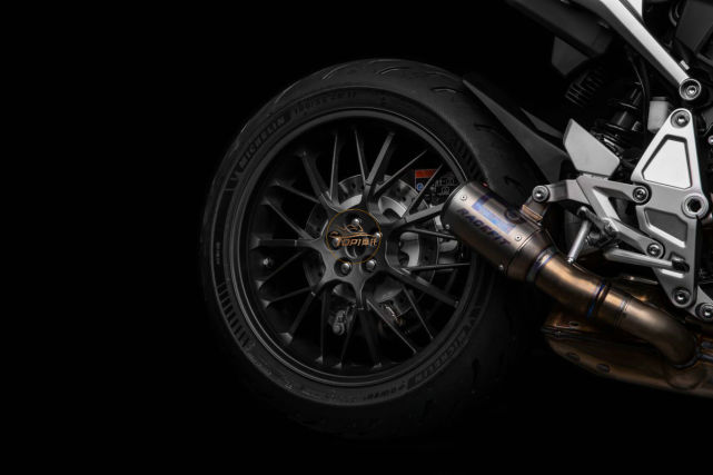 本田CB1000R的5Four版本,將CB1000R的車尾重新設(shè)計(jì),安裝了細(xì)長的LED尾燈,讓車牌盡可能高,方便露出整個(gè)后輪胎,這種外觀深受摩托車街頭賽車手和運(yùn)動(dòng)車手的青睞,也是他們所追求的賽車輪廓。