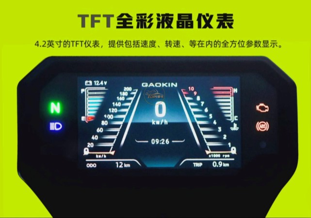 4.2寸的全彩液晶儀表,具備光線(xiàn)感應(yīng)功能,儀表盤(pán)的內(nèi)部布局,采用雙跑道、左右對(duì)稱(chēng)式的布局,左側(cè)速度表、右側(cè)轉(zhuǎn)速表,左上角油量表,右上角水溫表,中間部分是數(shù)字顯示的時(shí)速數(shù)據(jù)。