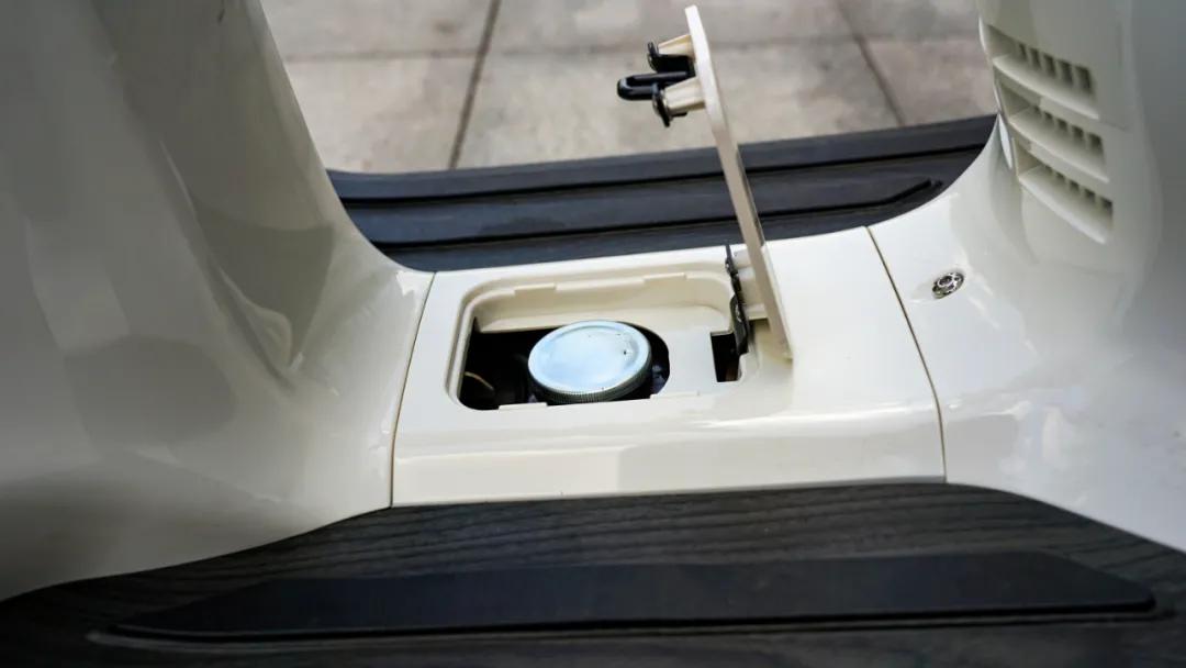 前面板內(nèi)側(cè)配備了一個(gè)手套箱,內(nèi)部還帶有USB接口,不過(guò)手套箱容積有限,也只能放下手機(jī),傳統(tǒng)的置物掛鉤沒(méi)有缺席,方便大家買(mǎi)菜,鎖具采用一體鎖,帶有磁石防盜設(shè)計(jì),開(kāi)座桶油箱均能在一個(gè)鎖孔完成,原本在300上是水箱加注口的塑料小蓋板也得以保留,不過(guò)在這臺(tái)維多利亞 Sixties 150i 上并沒(méi)有什么用,因?yàn)檫@個(gè)是風(fēng)冷發(fā)動(dòng)機(jī)。