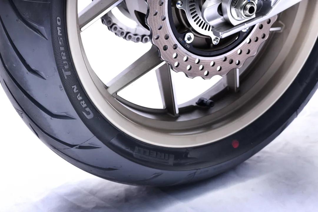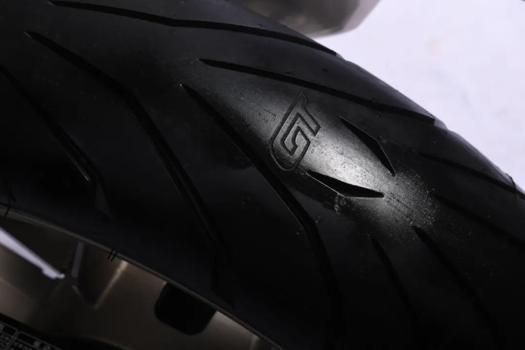 輪胎方面,高金也非常舍得下本啊,原廠配備倍耐力天使GT輪胎,前輪規(guī)格120-70/17,后輪規(guī)格160-70/17,這套胎的抓地力也是非常不錯(cuò)的,也符合FLAME500運(yùn)動(dòng)型街車的定位。