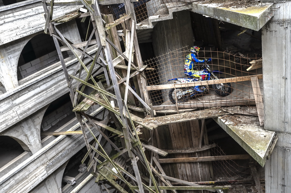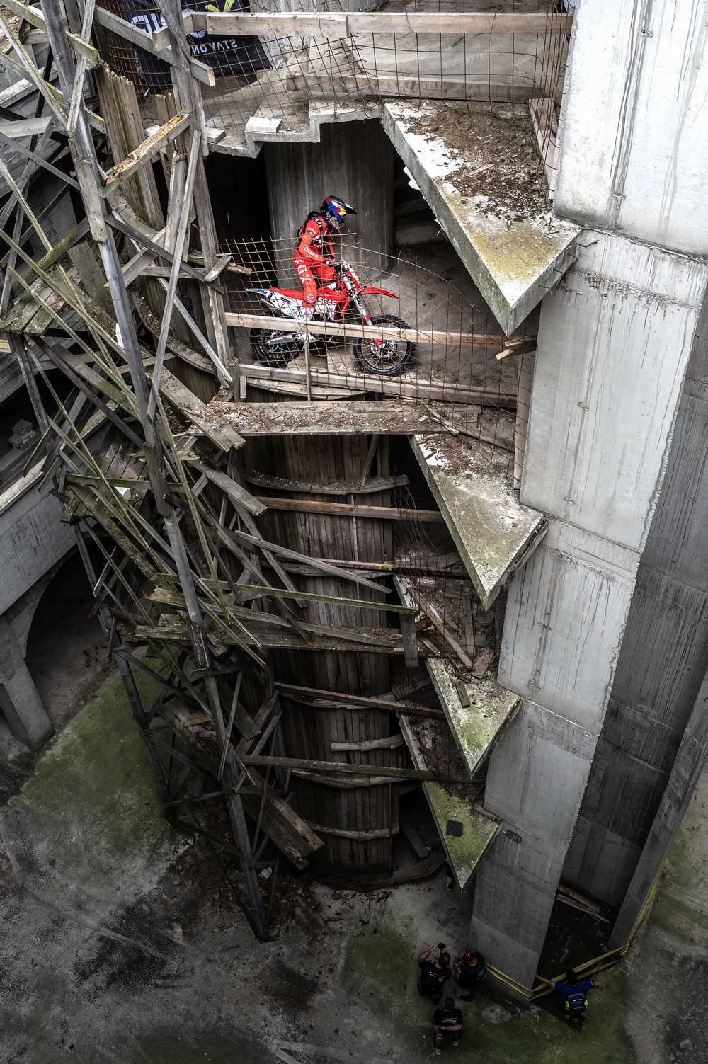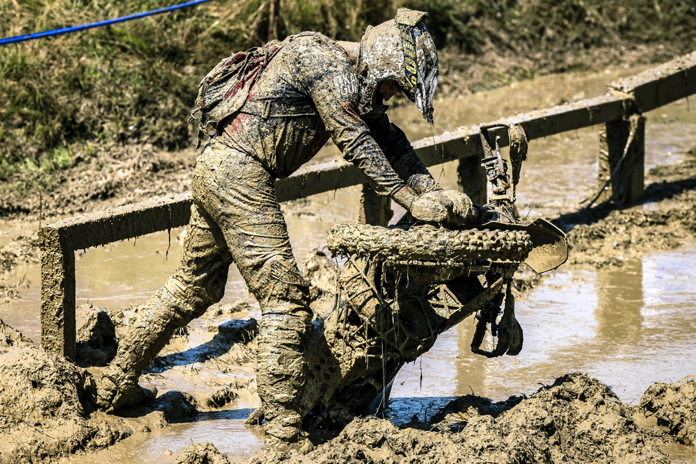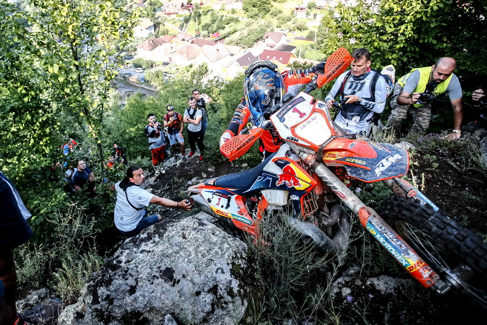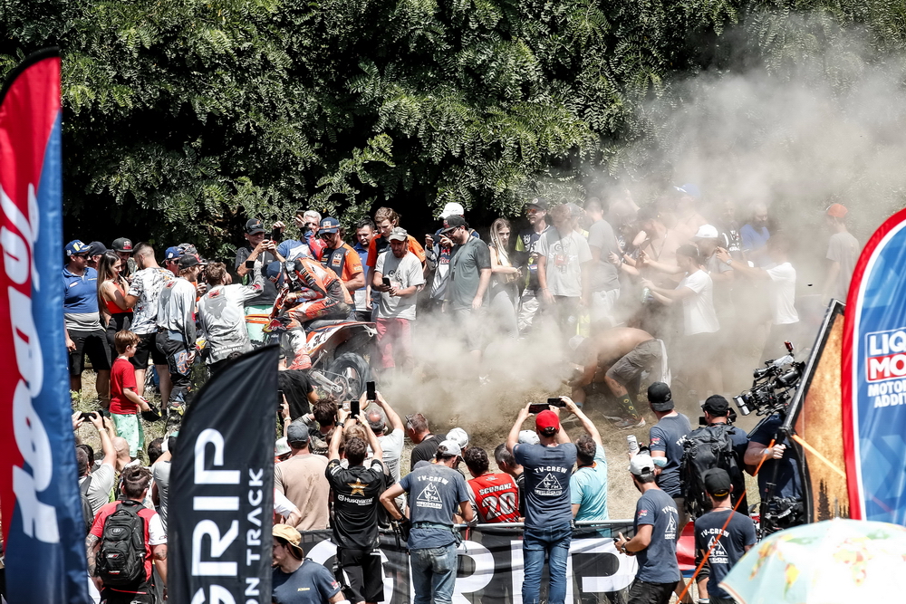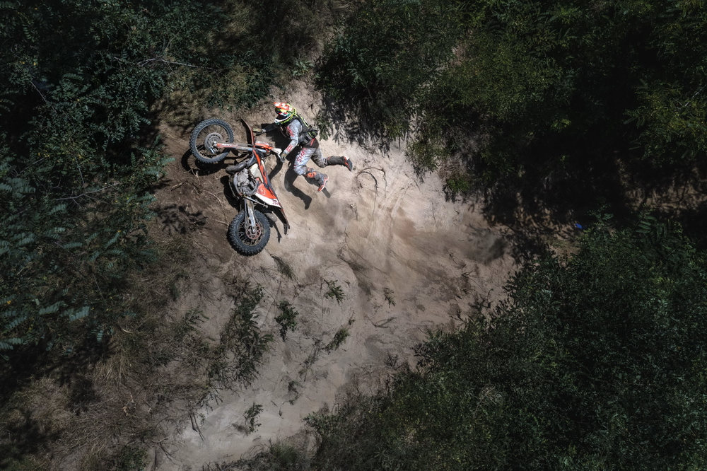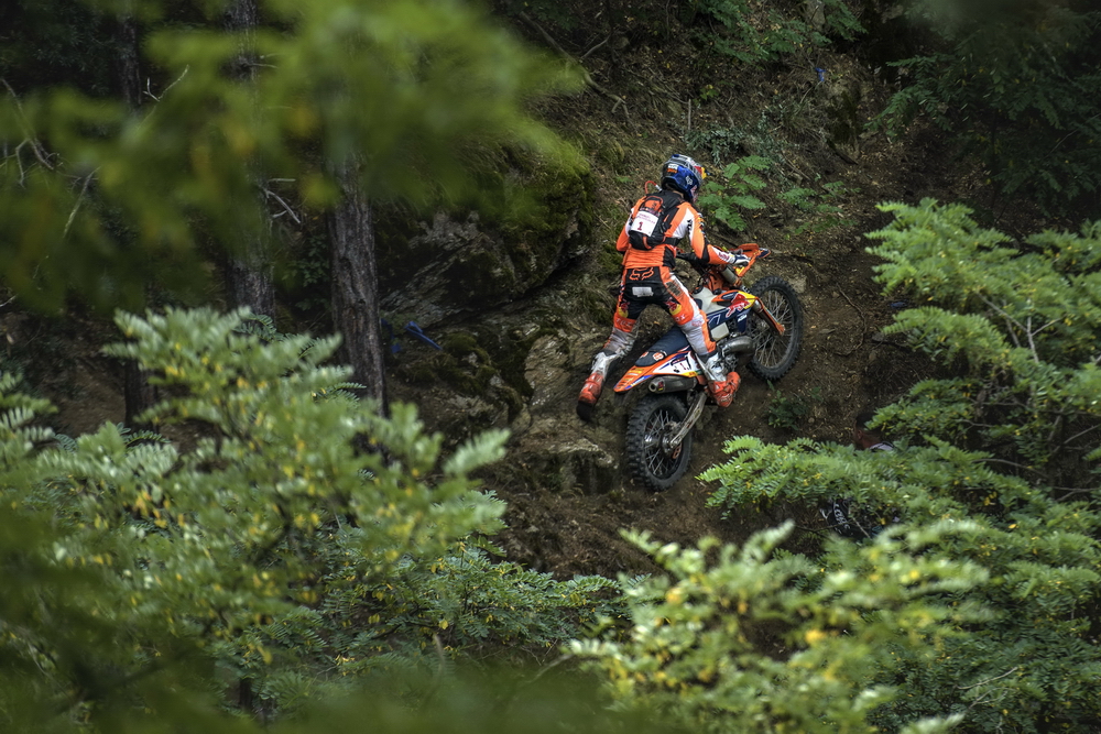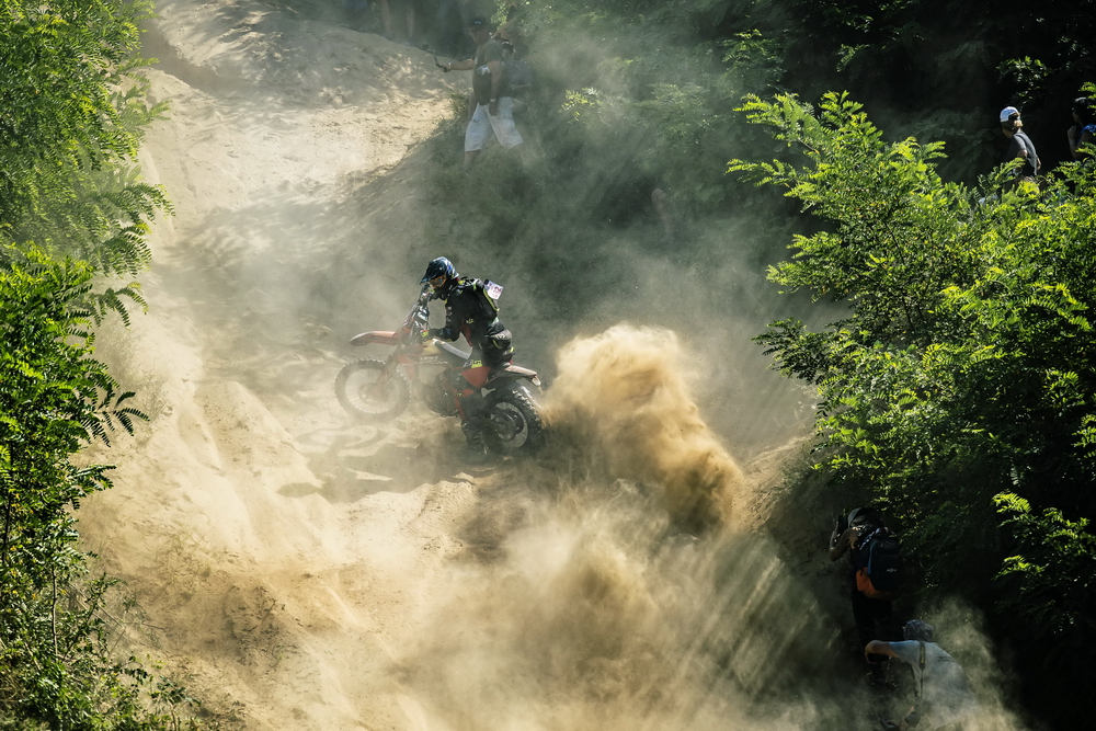 在崎嶇的野外進(jìn)行競速賽,有著 Rally 拉力和 Motocross 場地越野般的風(fēng)格,樹林里的飛馳則屬于標(biāo)準(zhǔn)的 Enduro 耐力越野競技,而越過高高的亂石堆、則對車手有著 Trial 障礙攀爬技巧的要求,Hard Enduro 極限耐力越野,幾乎是涵蓋了越野賽的所有領(lǐng)域。而每天四到五個(gè)小時(shí)的比賽(這一站比賽的冠軍萊騰比切勒(Manuel Lettenbichler),完賽的總時(shí)間接近 20 小時(shí)),則意味著對車手的體力是個(gè)巨大的消耗。