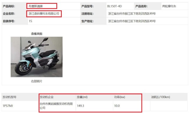 在工信部最新批次的公告當(dāng)中,有一臺ADV踏板摩托車出現(xiàn)了,這臺車來自浙江森鈴摩托車,用的產(chǎn)品商標(biāo)是布雷斯通牌,搭載一臺149.3cc排量的單缸發(fā)動機(jī),最大功率有10kw,由臺州市黃巖越雅發(fā)動機(jī)提供。