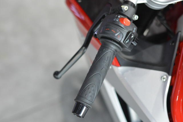 右側(cè)開關(guān)比較簡單,僅有一個啟動/熄火裝置,發(fā)動機模式選擇按鈕和,剎車牛角支持角度調(diào)節(jié),離合牛角卻不支持。