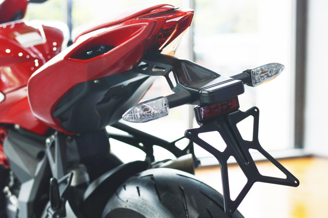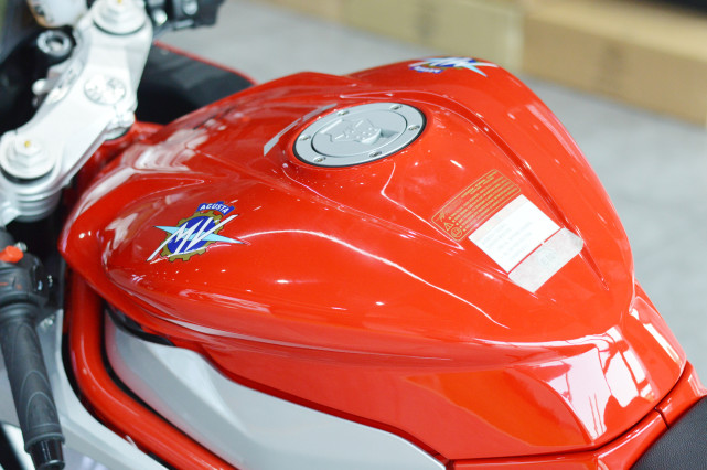 紅白相間的配色也是MV Agusta用了很多年的經(jīng)典配色,Rosso版采用了純紅色的涂裝,而RC版則是獨享拉花的設(shè)計。