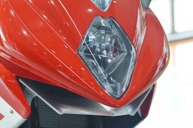 自從F4停產(chǎn)之后,F(xiàn)3就成為MV Agusta F系列唯一的在售跑車,目前的F3一共有三個型號,分別為F3 800 Rosso、F3 800、F3 800 RC,國內(nèi)只有后面兩款,Rosso暫時沒有引進(jìn)。F3 800的國內(nèi)售價為22.8萬,RC車型的售價為28.8萬。今天拍的這款是22.8萬的F3 800,在800cc級別的跑車當(dāng)中是售價最貴的車型之一,確實無愧于他們“摩托車當(dāng)中藝術(shù)品”的稱號。