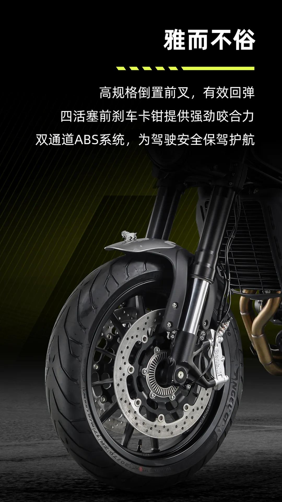 剎車系統(tǒng),由原先的Brembo剎車系統(tǒng)改成了帶有“Benelli”LOGO的卡鉗,依舊是前雙碟對(duì)向四活塞卡鉗配后對(duì)向雙活塞卡鉗的搭配。