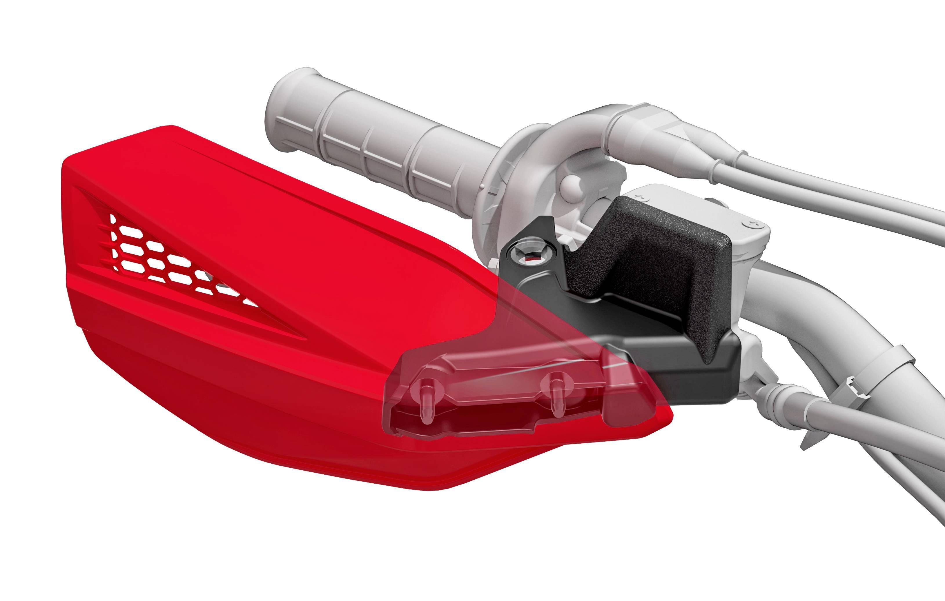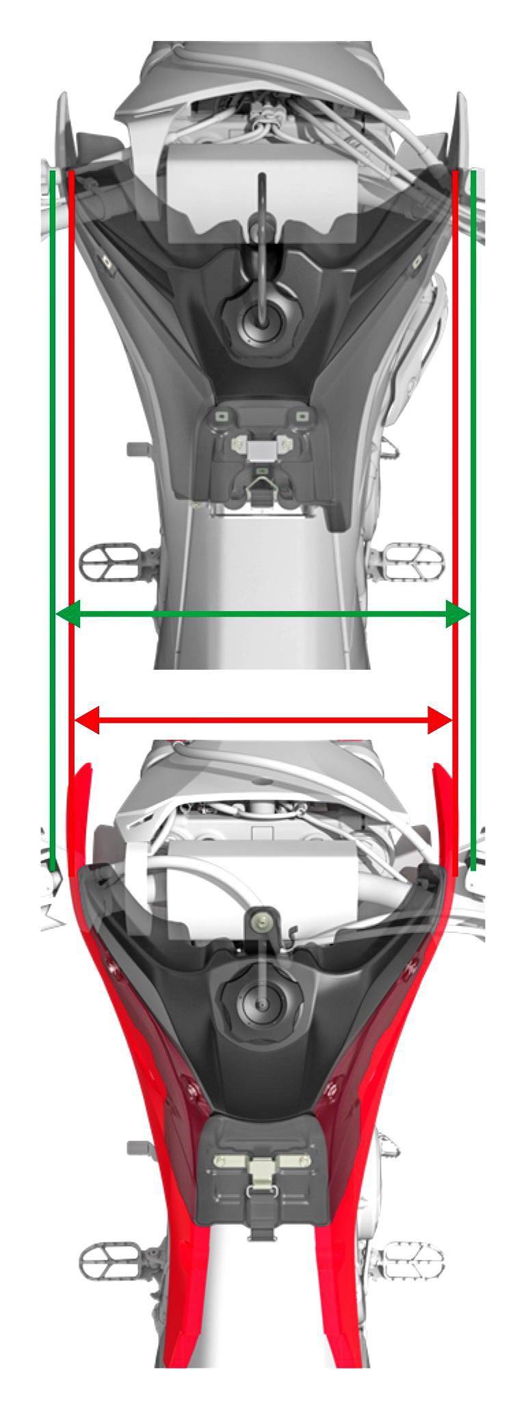下圖:新一代 2022&apos CRF250RX(紅色部分)與上一版本 CRF250RX(綠色部分)的部分外部尺寸對比。