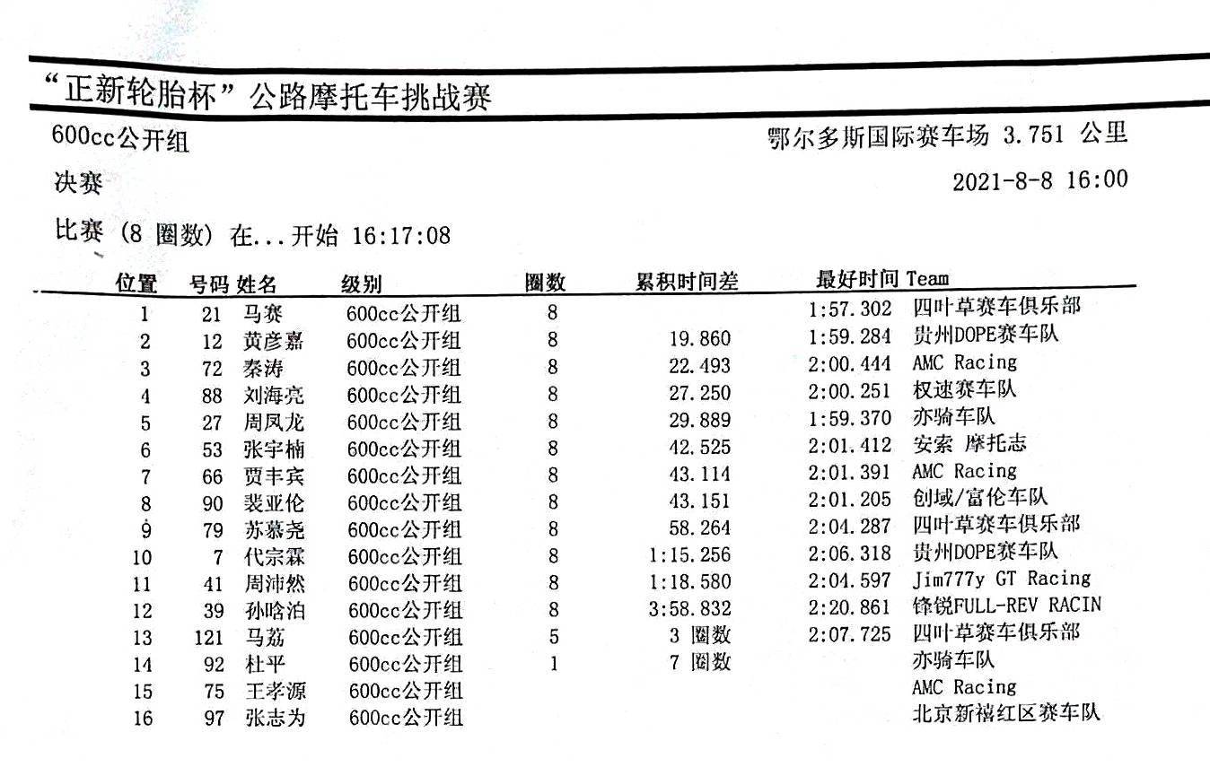 600 cc 公開組有 16 位參賽者報名。下面的圖片,是該級別風馳電掣的現(xiàn)場和成績。