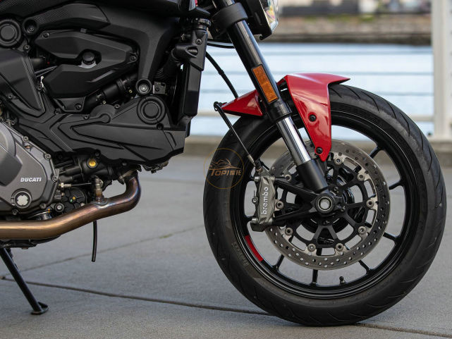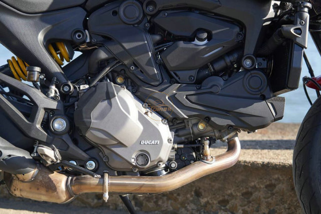 新的Testatretta 11° V型雙缸發(fā)動機,來自Hypermotard 950,實際排量937cc,最大馬力111 匹(82千瓦)/9,250轉(zhuǎn),最大扭矩93牛米/6,500轉(zhuǎn)。這臺發(fā)動機的扭矩更加強勁,在 4000-8000 轉(zhuǎn)的轉(zhuǎn)速范圍內(nèi),扭矩方面比老款Monster 821多了將近27Nm。