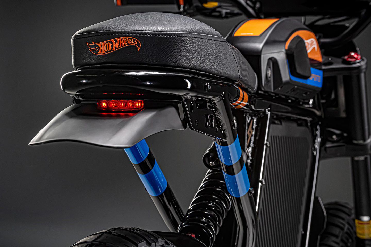 這次與Hot Wheels合作打造的RX車型采用航空級(jí)6065/7071 鋁合金車架,全車換上標(biāo)志性的風(fēng)火輪藍(lán)橙色調(diào)涂裝,搭配Saddlemen訂制座椅,ODI Ruffian ATV把手與Crankbrothers踏板,20吋的鋼絲框讓整臺(tái)車更具越野叛逆風(fēng)格。