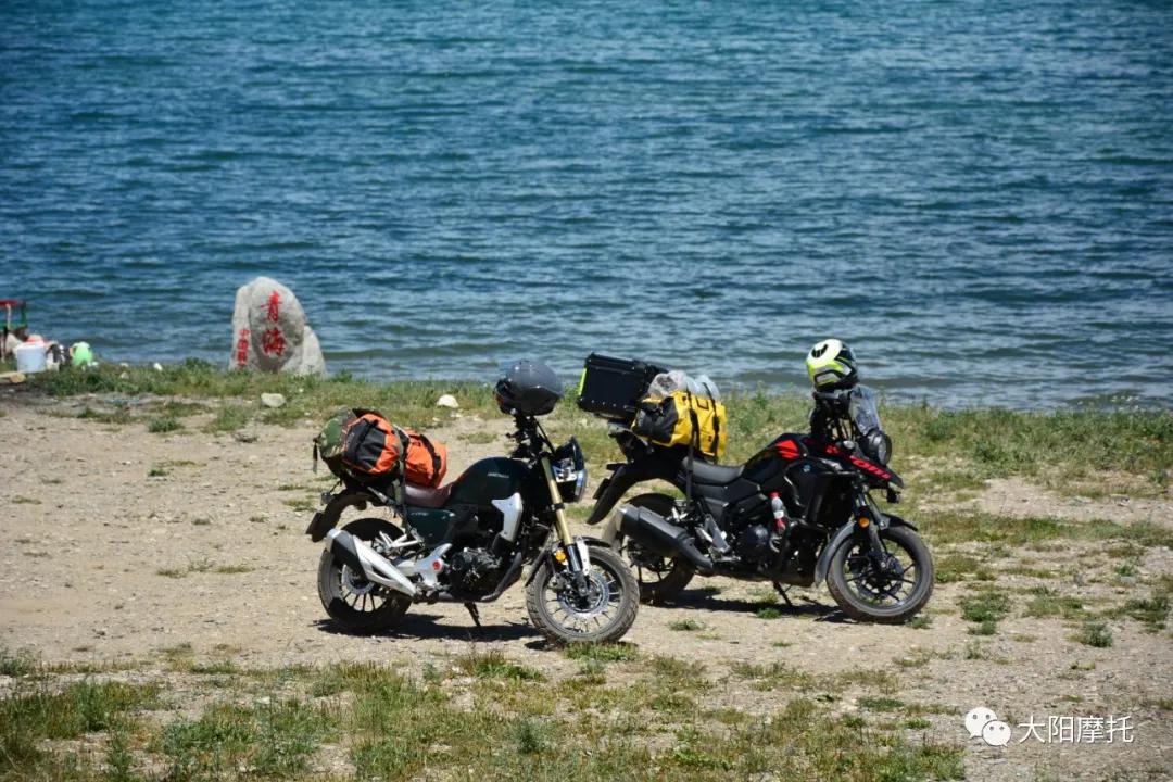 19日,目的地:黑馬河日出景觀區(qū)扎營。由于今天路程短,主要游玩就沒怎么趕,出發(fā)路上稍稍有些堵,好在騎得是摩托,溜溜邊就過去了。一路上美景不斷,摩友也多。走了一會,遠遠的望見青海湖如一片懸在空中的汪洋,極為壯觀。