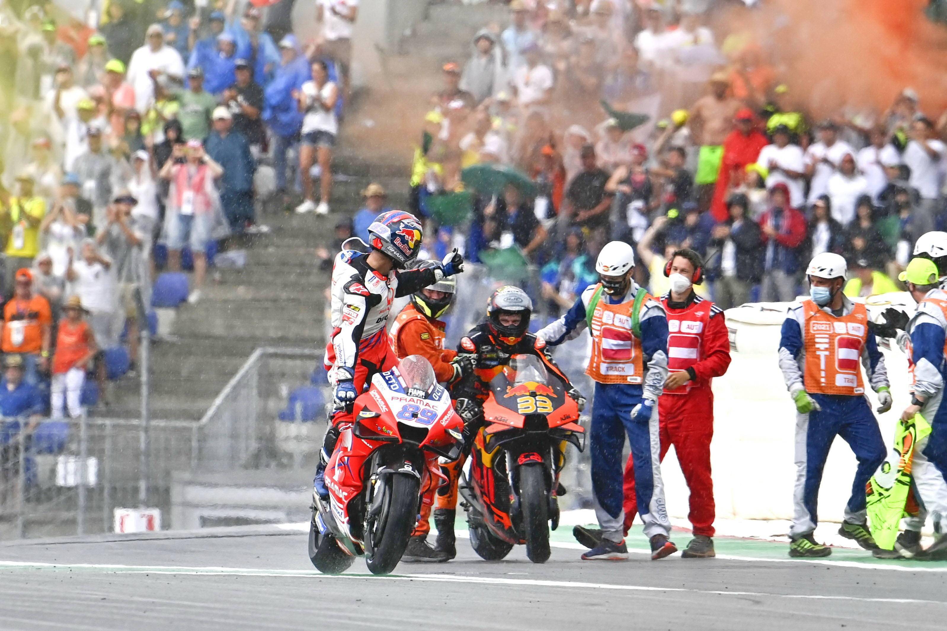 MotoGP 級別,賽前的 Q2 排位賽,駕駛 89 號(hào)的西班牙車手馬?。↗orge Martin)再次跑出了破賽道圈速記錄的 1 分 22.643 秒,打破了對上一周、他自己所創(chuàng)造的 1 分 22.994 秒舊記錄,連續(xù)兩周獲得了排頭位出賽。
