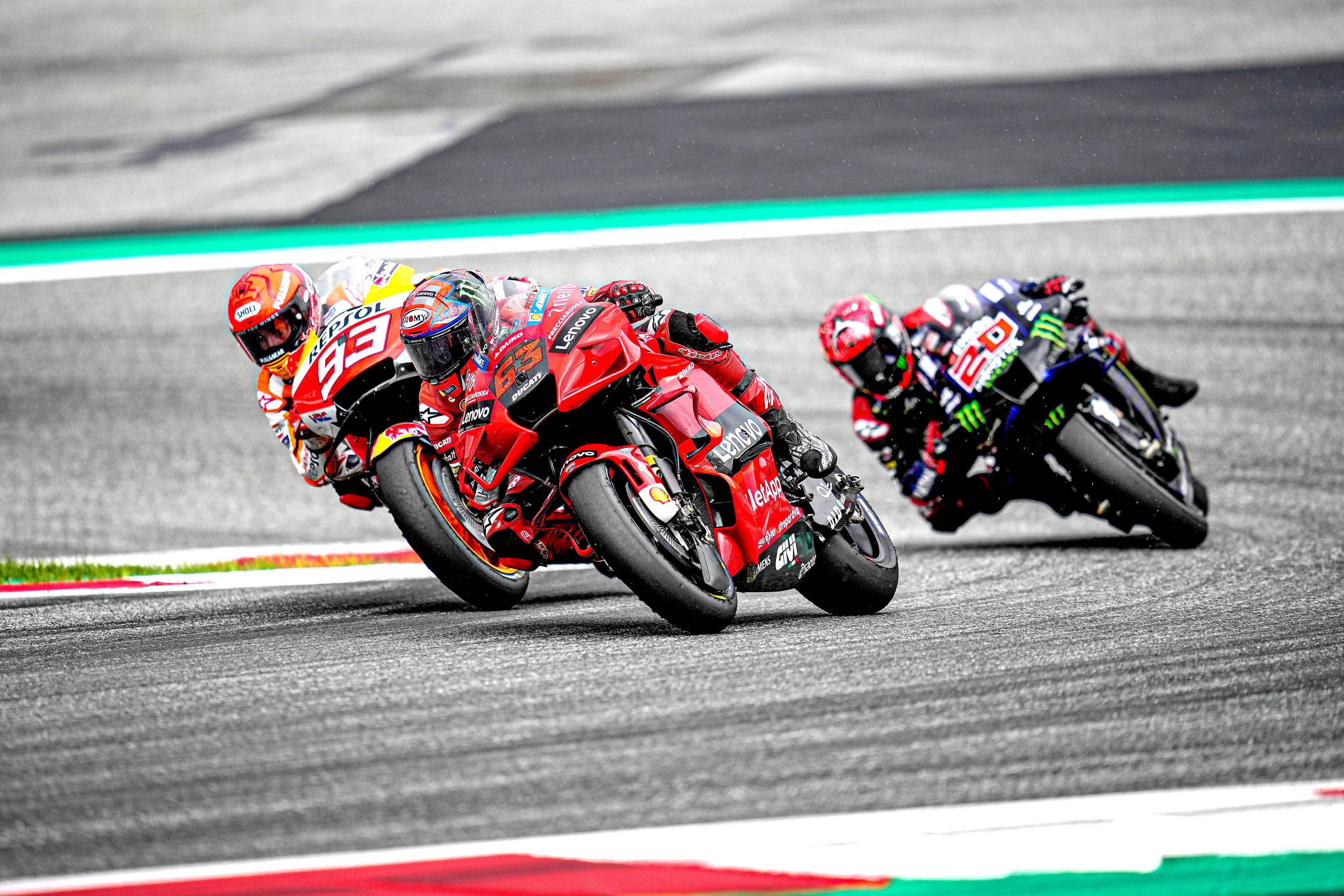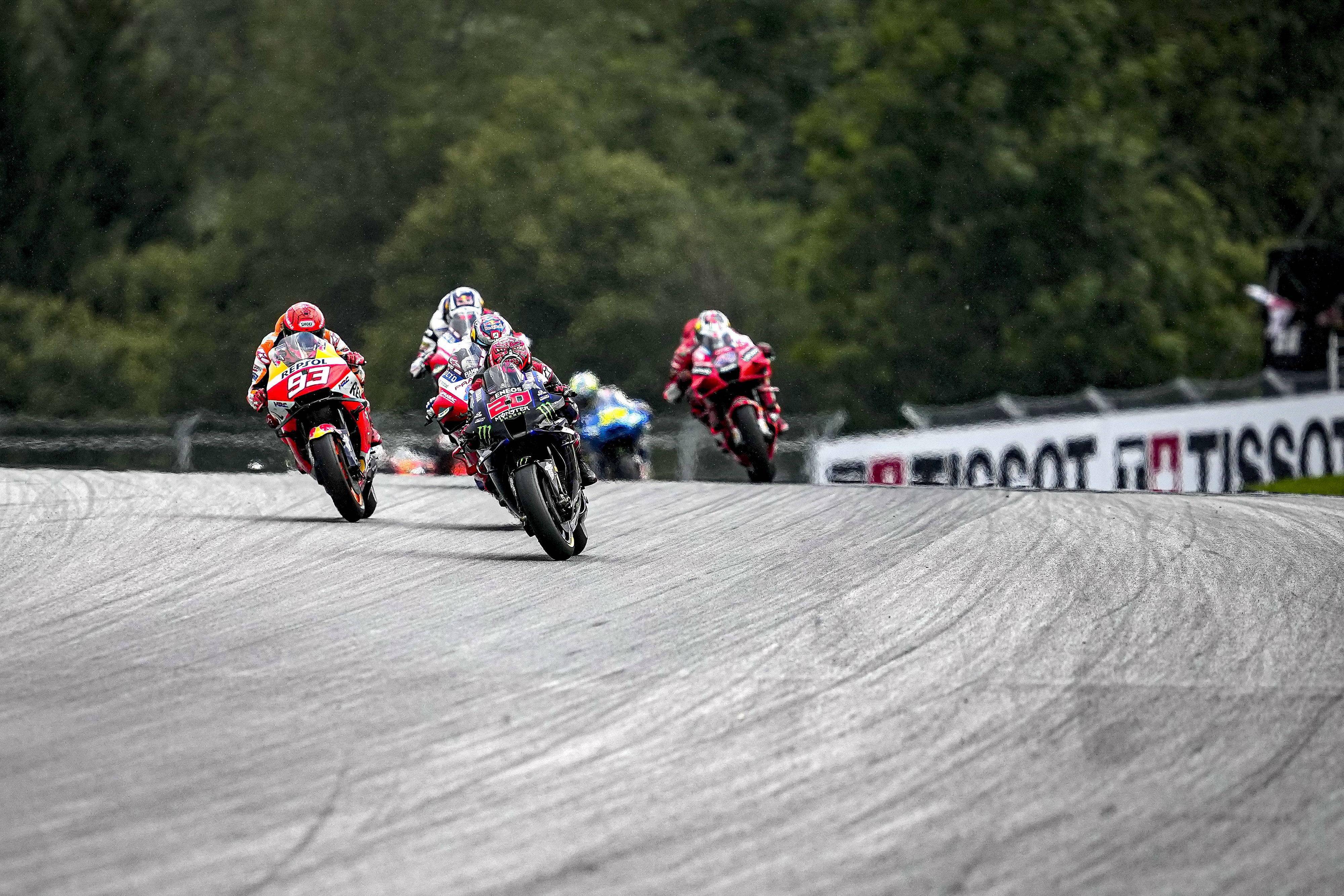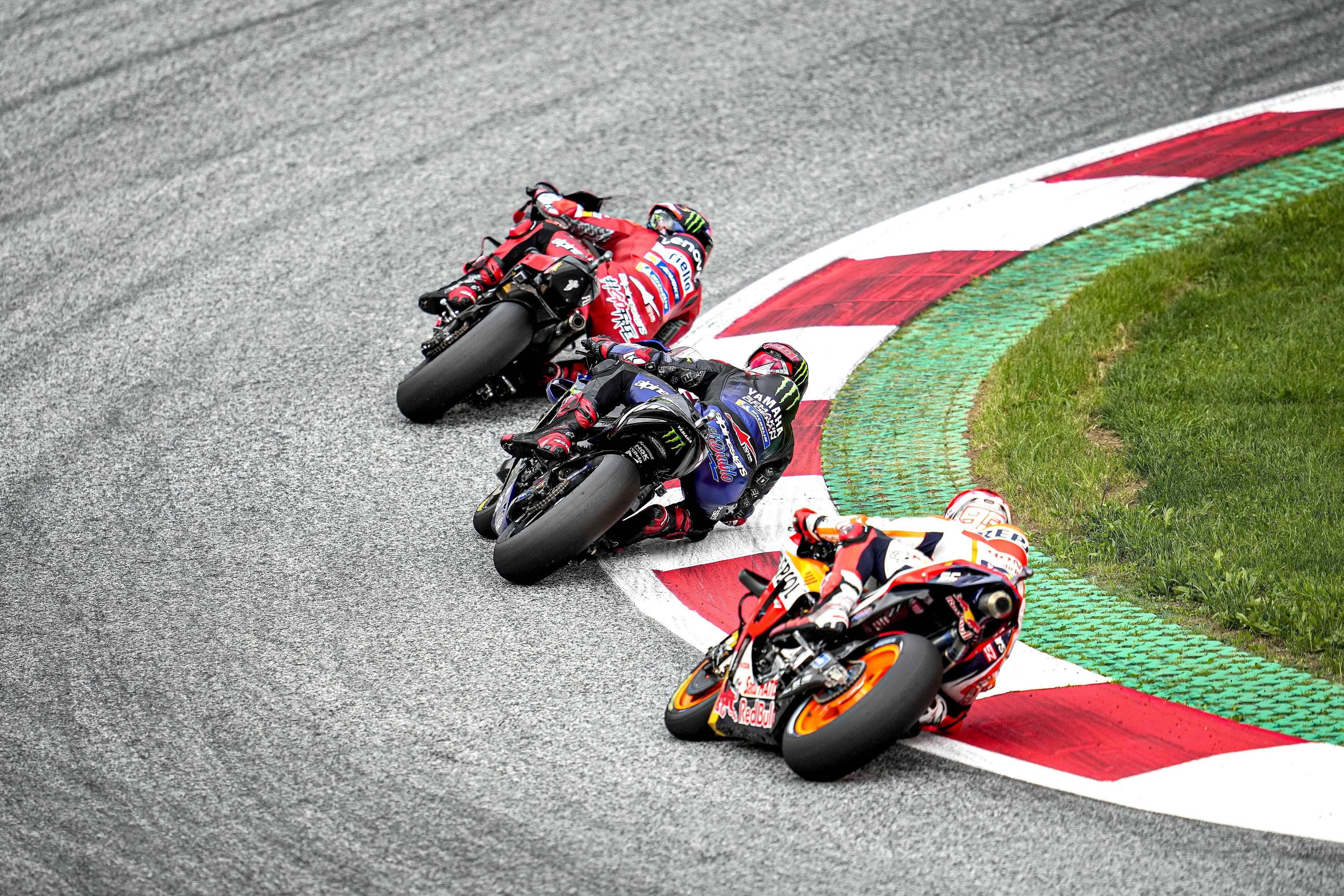 進(jìn)入比賽的第 20 圈,馬昆斯開始采取更具攻擊性的策略,在越過了夸塔拉羅之后,不斷向巴納亞發(fā)動(dòng)猛攻,并多次實(shí)現(xiàn)超越、短暫地取得領(lǐng)先位置,完完全全的一副爭取個(gè)人的 MotoGP 職業(yè)生涯、首次奪得奧地利站勝利的態(tài)勢。