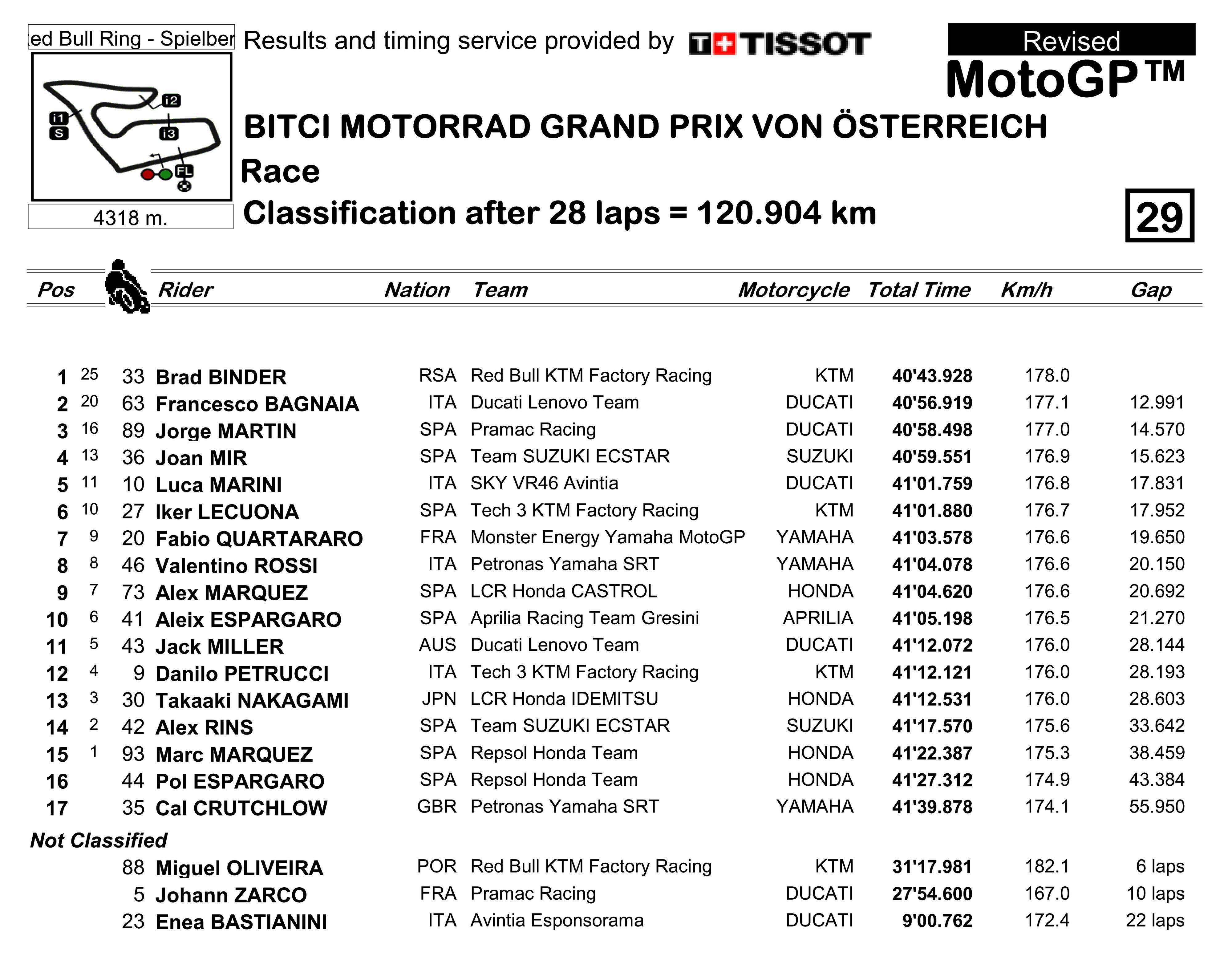 2021 年度 MotoGP 第十一站的比賽 —— 奧地利站(Grand Prix Von Osterreich), 八月 13 - 15 日在奧地利的斯皮博格(Spielberg)紅牛賽車場舉行。這是連續(xù)兩周在這條賽道上舉行的第二場分站比賽。
