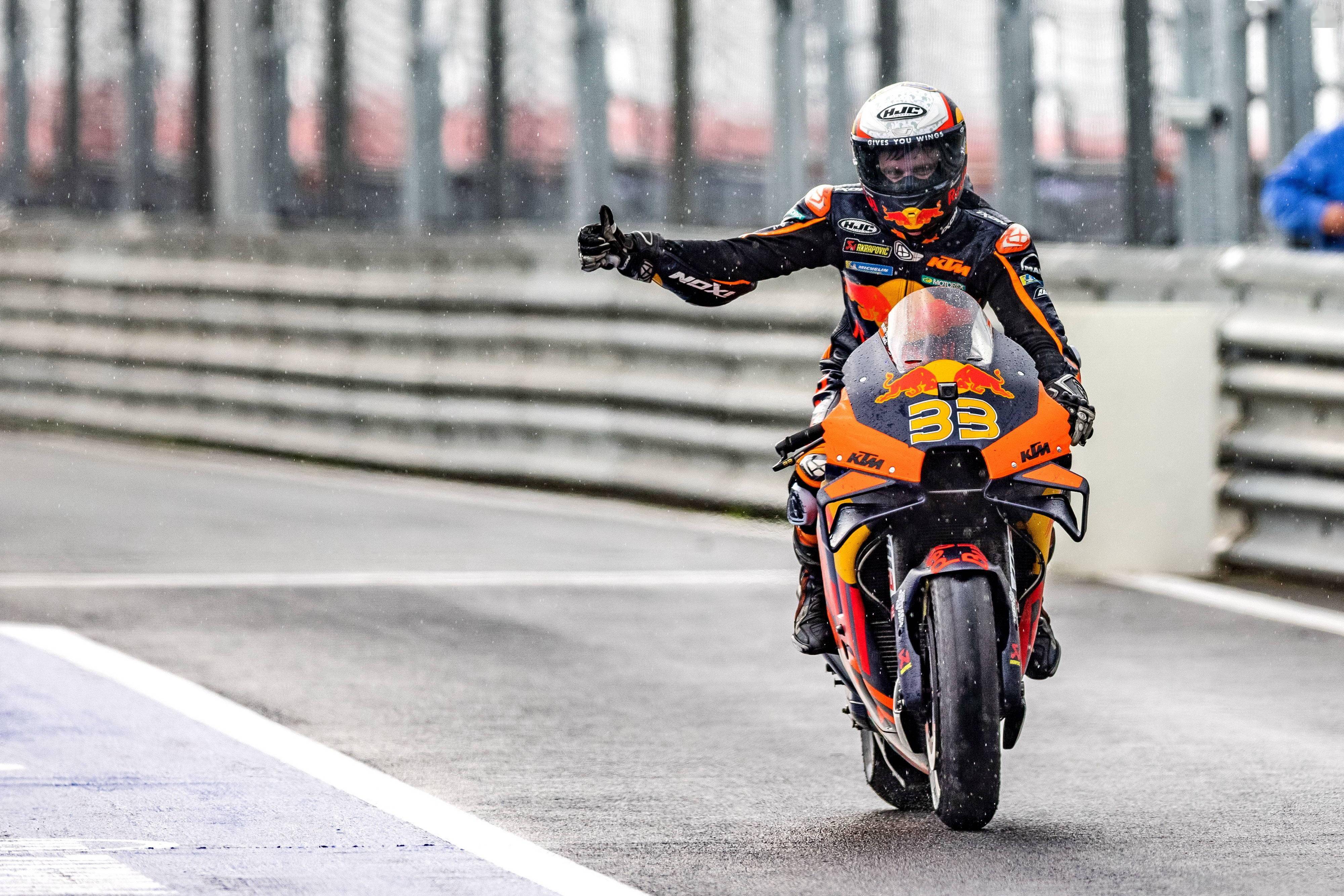 最后的兩圈是扣人心弦的大混戰(zhàn),使用干地胎、雨胎的車手們都在各展神通、奮力向前。最終,賓達(dá)奪得了本站比賽的勝利,奪得了自己在本賽季的首個(gè)分站冠軍的同時(shí),也為 KTM 拿到了 2021 賽季的第二場勝利。