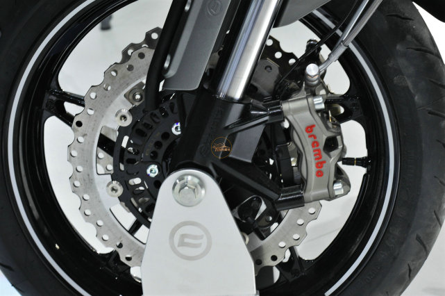 前300mm雙浮動(dòng)盤+Brembo Stylema徑向四活塞剎車卡鉗+Brembo直推上泵,后260mm單碟+Brembo P34雙活塞剎車卡鉗。