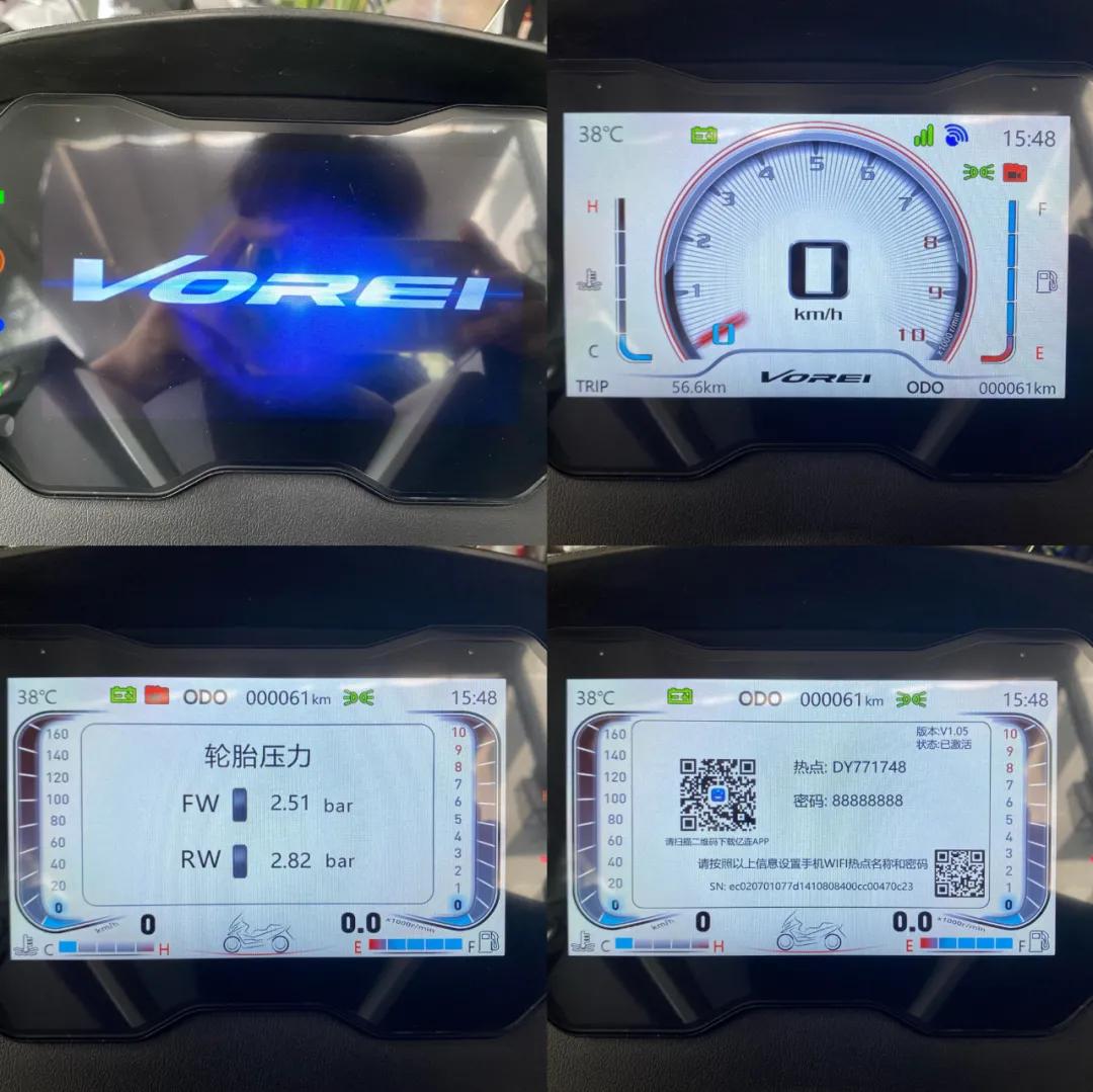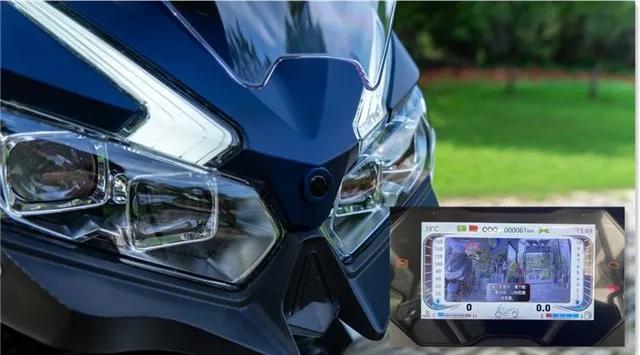 儀表方面,豪華版車型配備了一塊超大尺寸的TFT全彩液晶儀表,就像是放了一塊Pad在車上,儀表功能也是眼花繚亂,除了基礎(chǔ)的車速、轉(zhuǎn)速、水溫、油量顯示外,通過左側(cè)手把上的按鍵還可以切換油耗、剩余續(xù)航里程、胎壓、平均車速、行駛時長等功能的顯示,當(dāng)然,這么大尺寸的儀表都配上了,那手機(jī)互聯(lián)功能也必須安排上,連接手機(jī)后可以使用導(dǎo)航、切歌等功能,甚至還可以將手機(jī)上的電影等內(nèi)容實(shí)時投屏至儀表上觀看(注意騎行安全,危險操作不提倡),不過這塊儀表的開機(jī)時間會略長,需要適應(yīng)一下,這塊儀表會根據(jù)外界光線不同自動切換黑白背景,但是并不能調(diào)節(jié)亮度,原廠亮度較一般,在戶外強(qiáng)烈的陽光下可視性不是特別好。