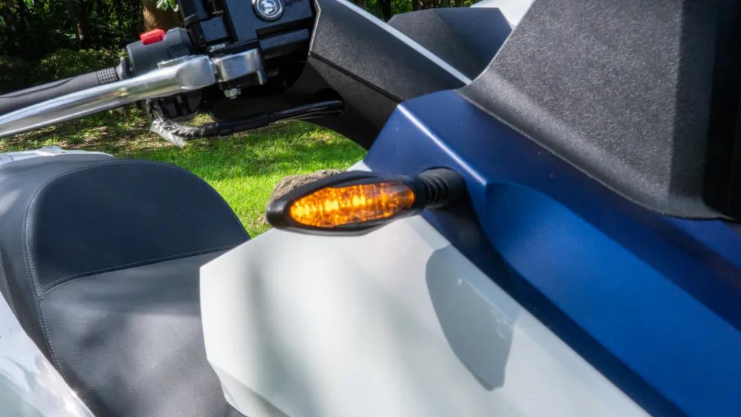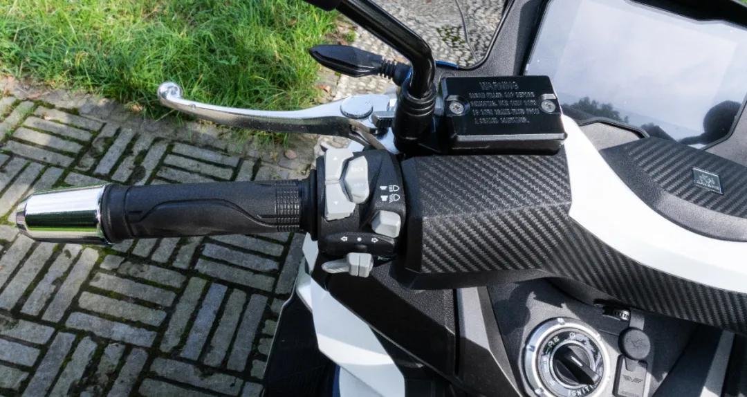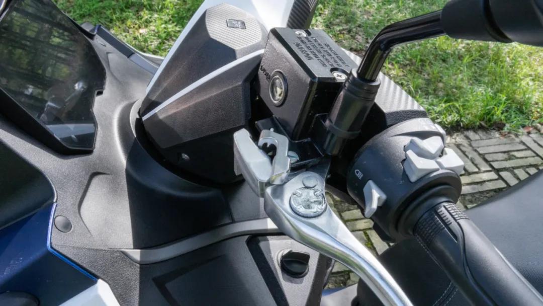 剎車手把均具備四段距離可調(diào),并且左側(cè)剎車手把還設(shè)置有機(jī)械式的駐車制動,這個功能對于一臺大踏板來說是非常實(shí)用的。