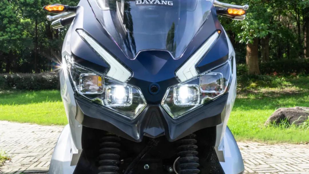 當(dāng)然,ADV150上極具辨識度的四透鏡LED大燈和隨動轉(zhuǎn)向功能,也同樣配置在ADV350上,在開啟轉(zhuǎn)向燈時大燈的照明區(qū)域單側(cè)可拓寬12度,照亮彎中的盲區(qū)。目前為止這個功能也是首次搭載于國產(chǎn)車上,從先前的油電混動系統(tǒng)再到現(xiàn)在的燈光隨動轉(zhuǎn)向系統(tǒng)不得不說大陽一直都是個,敢于創(chuàng)新的企業(yè)!