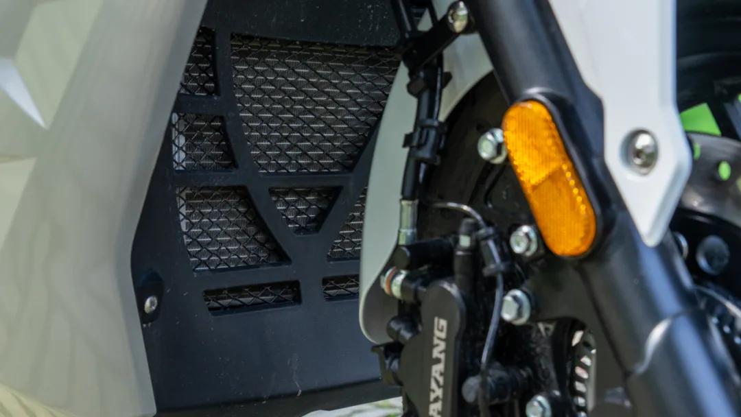 排量大了,自然需要更為強(qiáng)大的散熱能力來壓制這顆大“心臟”,所以ADV350的水箱安置于前輪后側(cè),并且原廠即配備金屬水箱護(hù)網(wǎng)。
