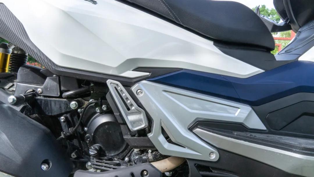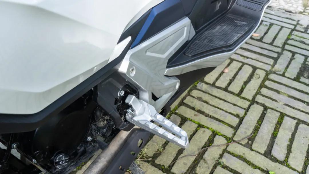 兩側(cè)的腳踏也非常寬大,除了可以滿足你不同的坐姿駕駛姿勢以外,腳踏向后延伸的部分還能滿足一定程度的站姿騎行,這也是一臺“ADV”車型該有的素質(zhì),并且兩側(cè)腳踏內(nèi)的車架均有做加強(qiáng)處理,強(qiáng)度更高。