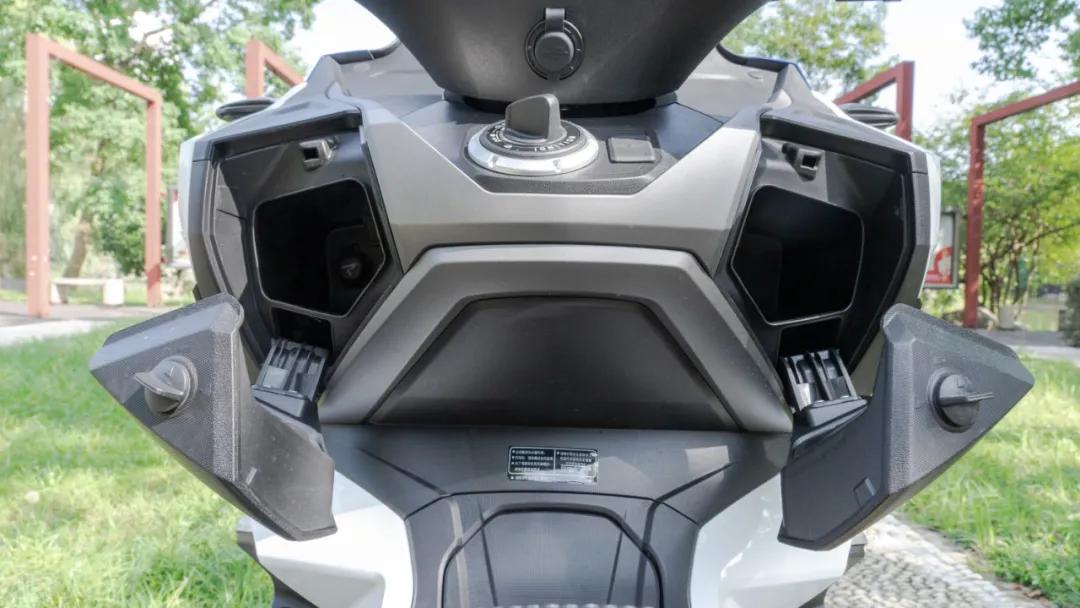 其次,在右邊手套箱中也存在一個開關(guān),這個開關(guān)是控制整車電源的,在車輛長時間停放時,只需要斷開這個開關(guān)即可實(shí)現(xiàn)全車斷電,省去拆卸電瓶的煩惱,這個功能在摩托車中并不常見,從上面幾點(diǎn)中我們也能看出大陽在細(xì)節(jié)上是下了不少功夫的!