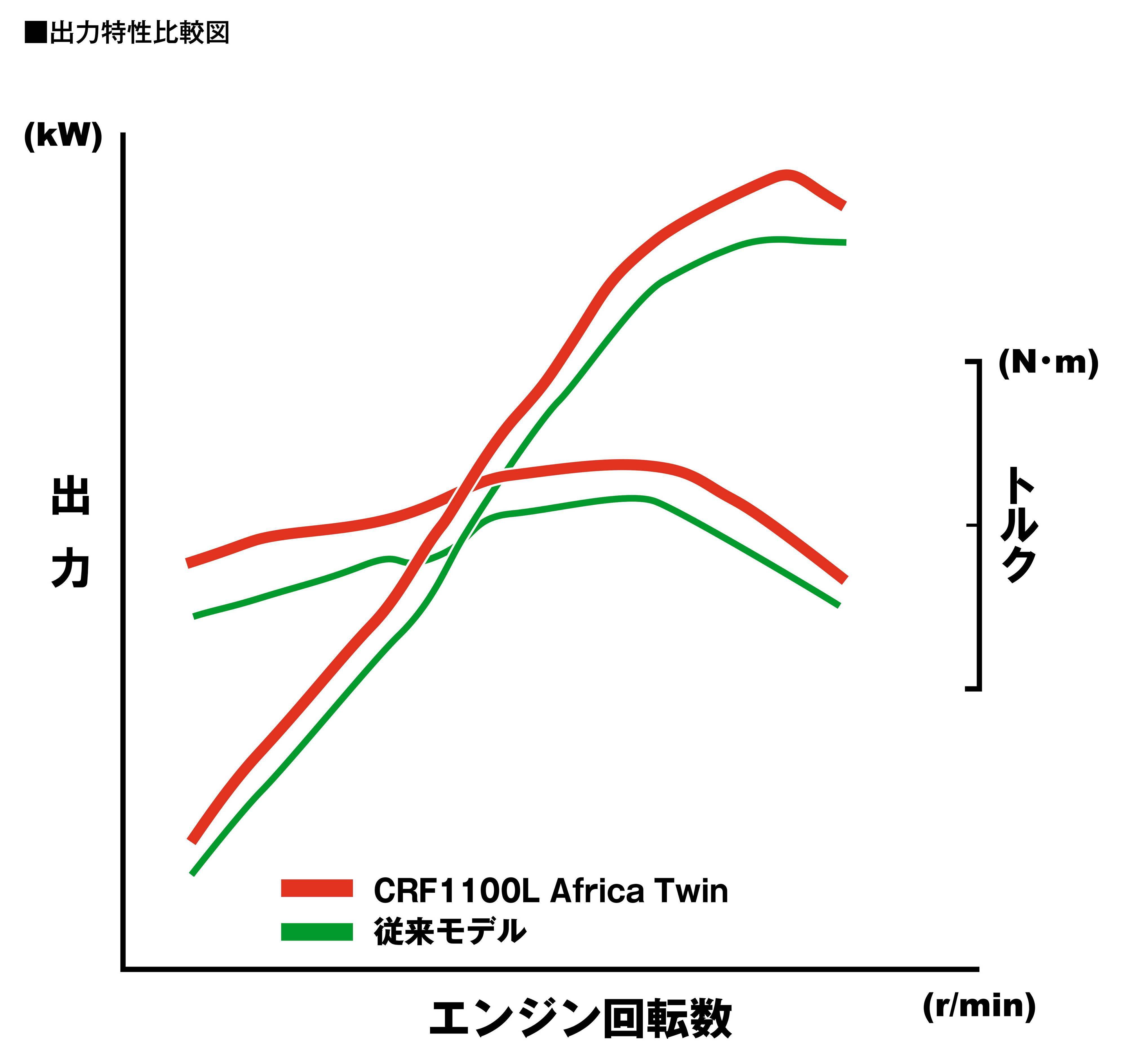下圖:CRF1100L 與上一代的 CRF1000L 輸出特性對比。