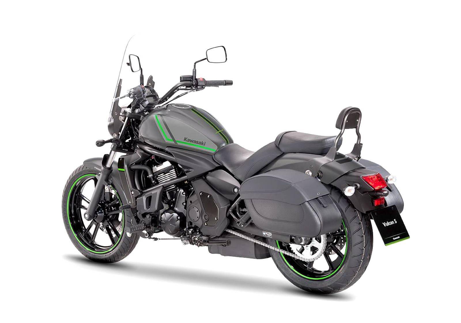 下圖:主要面向歐洲市場(chǎng),換裝了前高風(fēng)擋,標(biāo)配了后靠背、車尾兩側(cè)邊箱等組件的 Vulcan S Tourer 旅行者版。