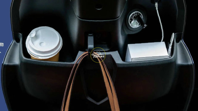 作為一款通勤買菜車, AFR125的前方有比較充裕的儲物空間,左右兩側(cè)的開放式手套箱,內(nèi)部配備USB充電接口,飲料杯支架,中間部分還有折疊式掛鉤。