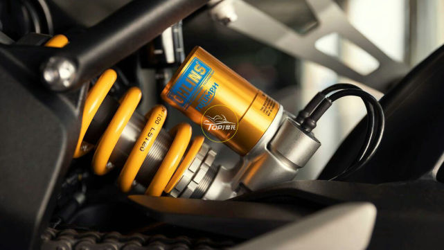 懸架部分升級(jí)為Öhlins Smart EC 2.0電子可調(diào)半主動(dòng)懸架系統(tǒng),前后懸架均可完全調(diào)節(jié),即使在騎行途中,半自主功能也可連續(xù)調(diào)節(jié)壓縮和回彈阻尼,以匹配騎行風(fēng)格、速度和加速度。