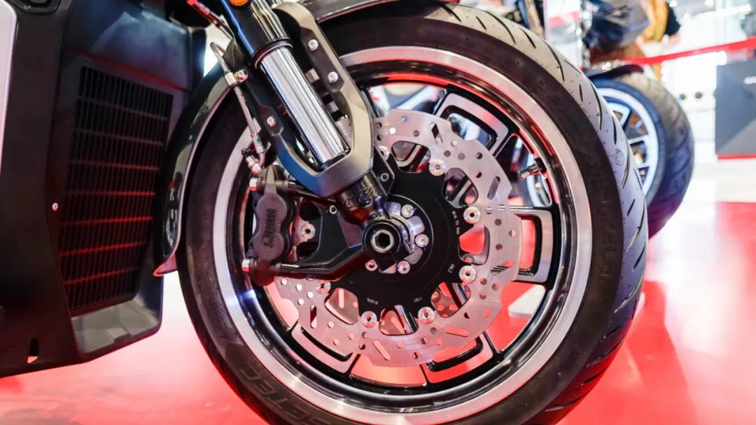 目前在這臺(tái)車上我們能看到的配置,鋁合金車架,前倒置減震,日信品牌前雙后單碟剎,日信液壓離合,電子油門,定速巡航等。
