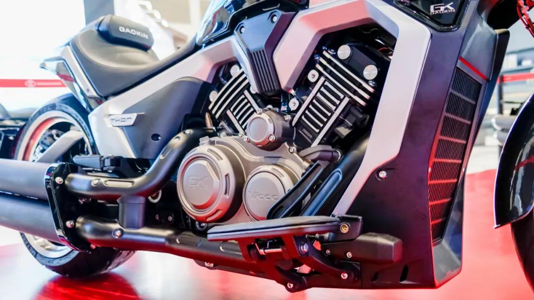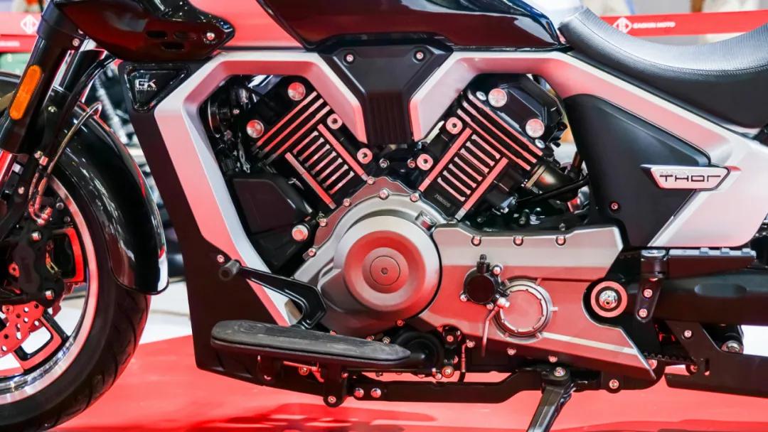 很多同學(xué)會(huì)好奇高金這么一個(gè)相對(duì)來(lái)說(shuō)比較新面孔的品牌,哪來(lái)的這么多大排量的動(dòng)力平臺(tái),這也不奇怪,其實(shí)高金就是發(fā)動(dòng)機(jī)起家的,生產(chǎn)有多款大排量發(fā)動(dòng)機(jī),先前還給摩瑞供應(yīng)過(guò)V缸800cc的發(fā)動(dòng)機(jī),現(xiàn)在展出的這臺(tái)GK1000巡航車的發(fā)動(dòng)機(jī)很有可能就是先前的那臺(tái)發(fā)動(dòng)機(jī)的衍生產(chǎn)品。