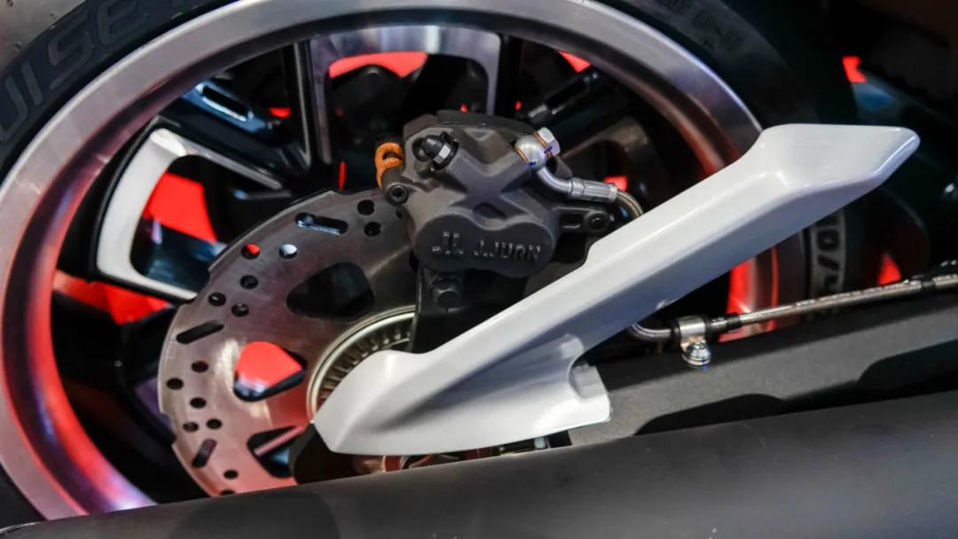 我們目前從現(xiàn)場(chǎng)實(shí)車上能看到,這臺(tái)車的完成度還是非常高的,甚至已經(jīng)接近于量產(chǎn)狀態(tài)了,目前我們能看到展車上搭載有真空輻條輪,KYB減震,日信剎車、電子油門等配置。