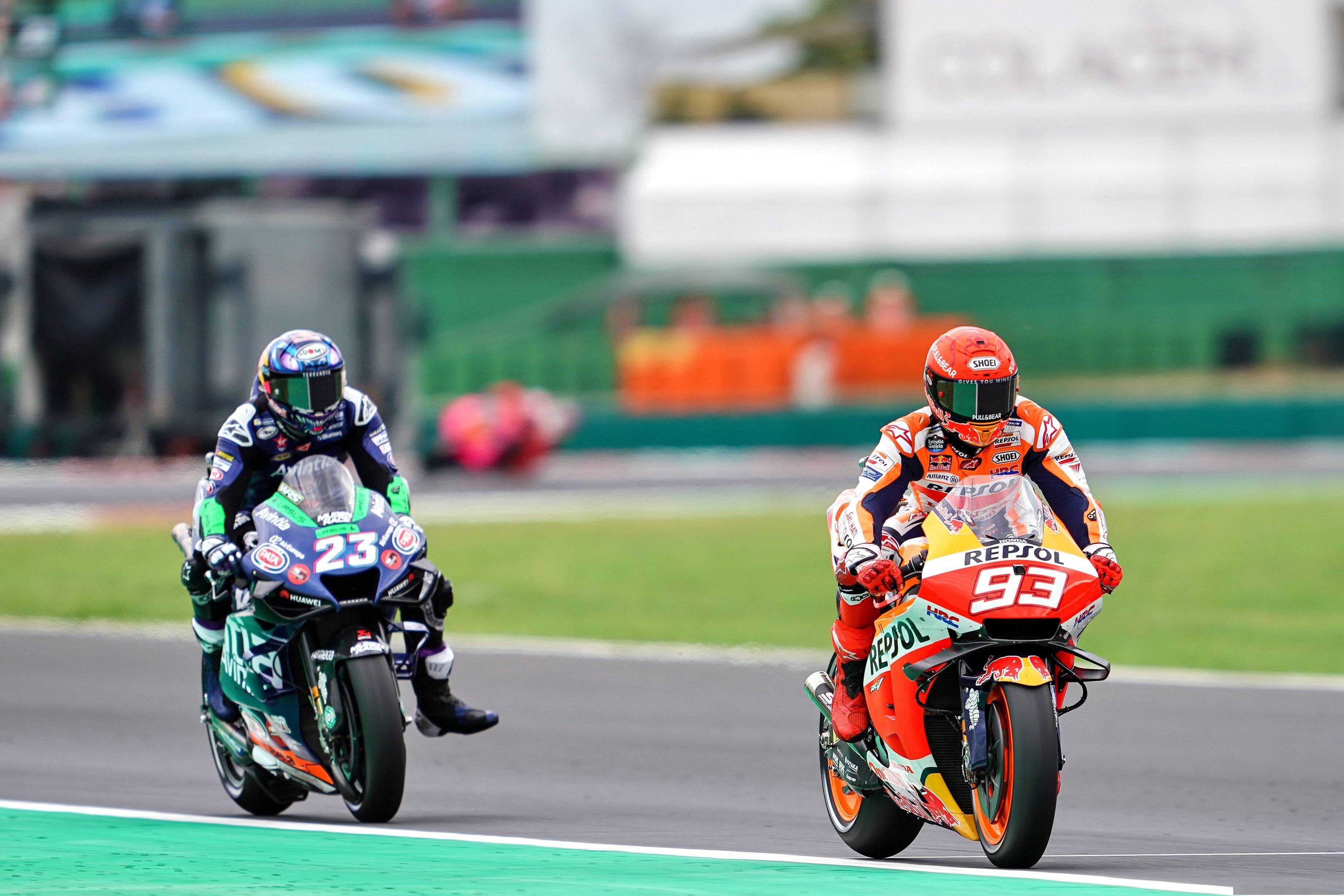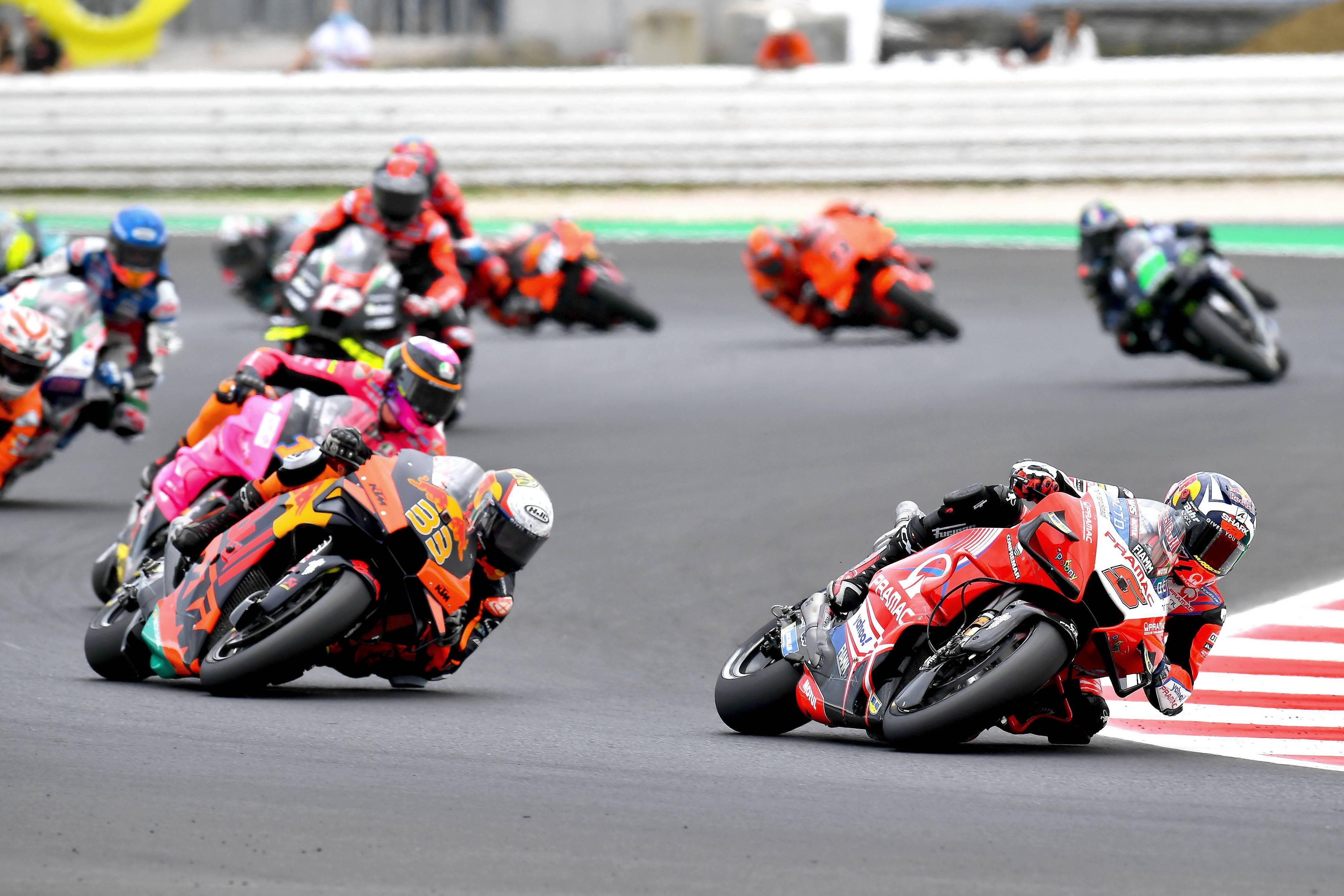 前面集團的身后,是多位工廠車隊的車手在追逐,其中夾雜著 23 號車、來自獨立車隊的巴斯塔尼尼(Enea Bastianini)。另一位來自獨立車隊的車手馬丁,在第 3 圈摔了一跤,退出了對前列位置的爭奪。